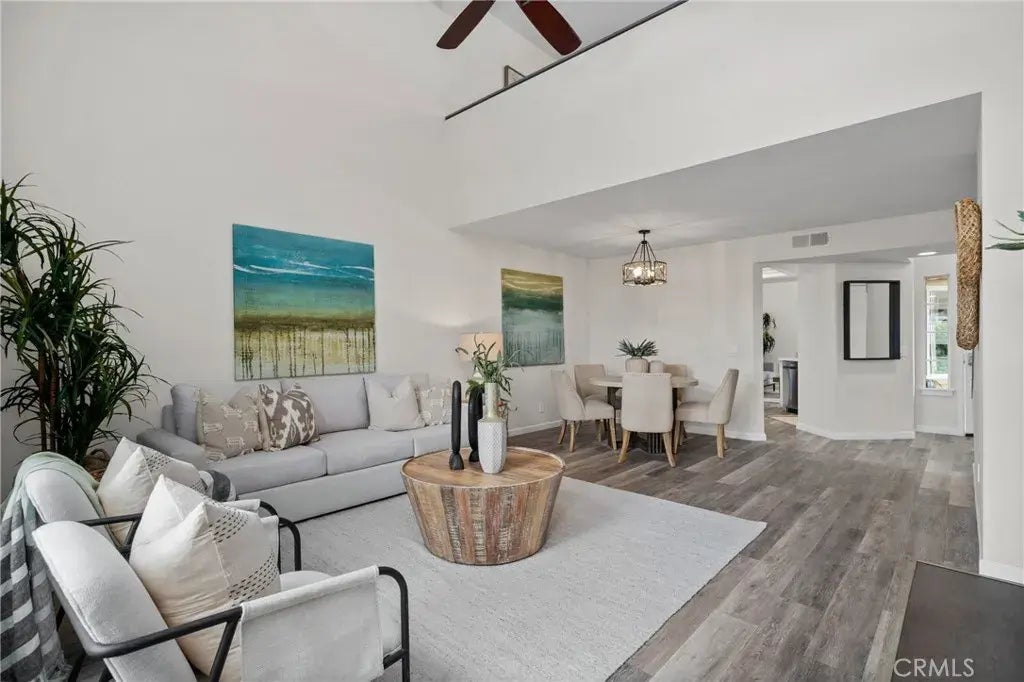 Welcome home to 27557 Paseo Tamara! This stunning 2-bedroom, 3-full bathroom home with large versatile loft, nestled in the coveted Mesa Vista neighborhood, is a perfect blend of modern luxury and comfort. This delightful home exudes warmth and character, offering a unique blend of comfort and style that feels like home from the moment you step inside. The main level features a tastefully upgraded kitchen, and two open living areas, perfect for creating an intimate setting for quiet evenings or hosting friends and family. Both bedrooms are located on the main level of the home. The primary bedroom features an en suite bathroom complete with two sinks, a large walk-in shower, and a generously-sized walk-in closet. There is also a sliding glass door with access to the back patio from this room. The second bedroom features high ceilings and natural light with views of the front garden. Ascend to the second level and discover the spacious loft, a versatile area with a full bathroom, ideal for an office, playroom, or additional bedroom. This flexible space adapts to your needs, providing a perfect retreat within the home. Practicality meets convenience with a 2-car attached garage, making daily routines seamless. Tucked away in a quiet cul de sac, enjoy the tranquility of your surroundings, with additional guest parking for your visitors. This home enjoys the benefits of the community including multiple pools, spas and BBQ areas. Golf enthusiasts will appreciate the direct walking access to the San Juan Hills golf course, a public course renowned for its scenic beauty and challe