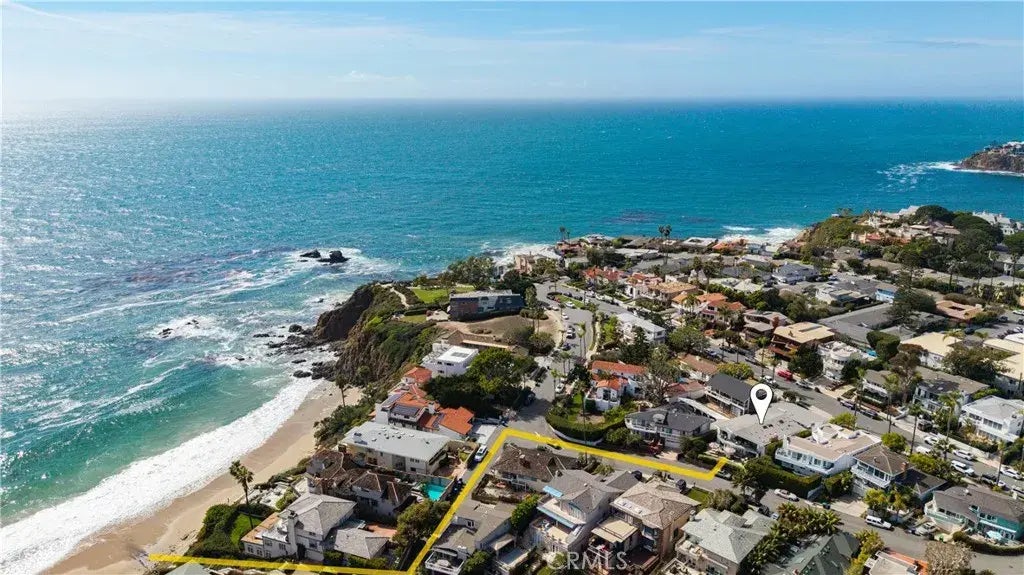 Tranquility AND Proximity... Just steps from the sand and Crescent Bay Park in north Laguna Beach, this meticulously rebuilt and remodeled home boasts serene panoramic ocean views from both levels. Offering a modern, upscale beach house vibe, the open and bright residence captures gorgeous whitewater vistas of the Pacific Ocean, Dana Point Headlands and evening lights. A retreat of tranquility and privacy, the Mid Century design was originally designed by Herb Brownell, and reimagined by Gallo Builders and top local interior designer Michael Fullen. Appx. 3,722 SF, the impressively sized home elevates curb appeal with beautifully maintained landscaping, a 3-car garage with individual glass roll-up doors, ample driveway parking, and a gated entry patio that is quiet, serene and welcoming. Lightly enjoyed by its current owners as a vacation home and never rented, the residence features nearly 2,000 SF across three outdoor living areas. Indoors, the fireplace-warmed living room and adjacent dining room open via a 25' Fleetwood sliding-glass door to an ocean-view 40'-wide deck. A massive island with seating is topped with a single slab of Carrara marble in a chef-inspired kitchen that hosts Caesarstone countertops, gray Shaker cabinetry, a solid Carrara marble farmhouse sink and a pantry. Thermador appliances include a 6-burner cooktop with griddle, cabinet-matched built-in refrigerator, and a full-height 80-bottle wine refrigerator. Enjoy open-beam vaulted ceilings, skylights, oak flooring, commercial-grade fire sprinklers throughout, and custom closet systems in all bedrooms.