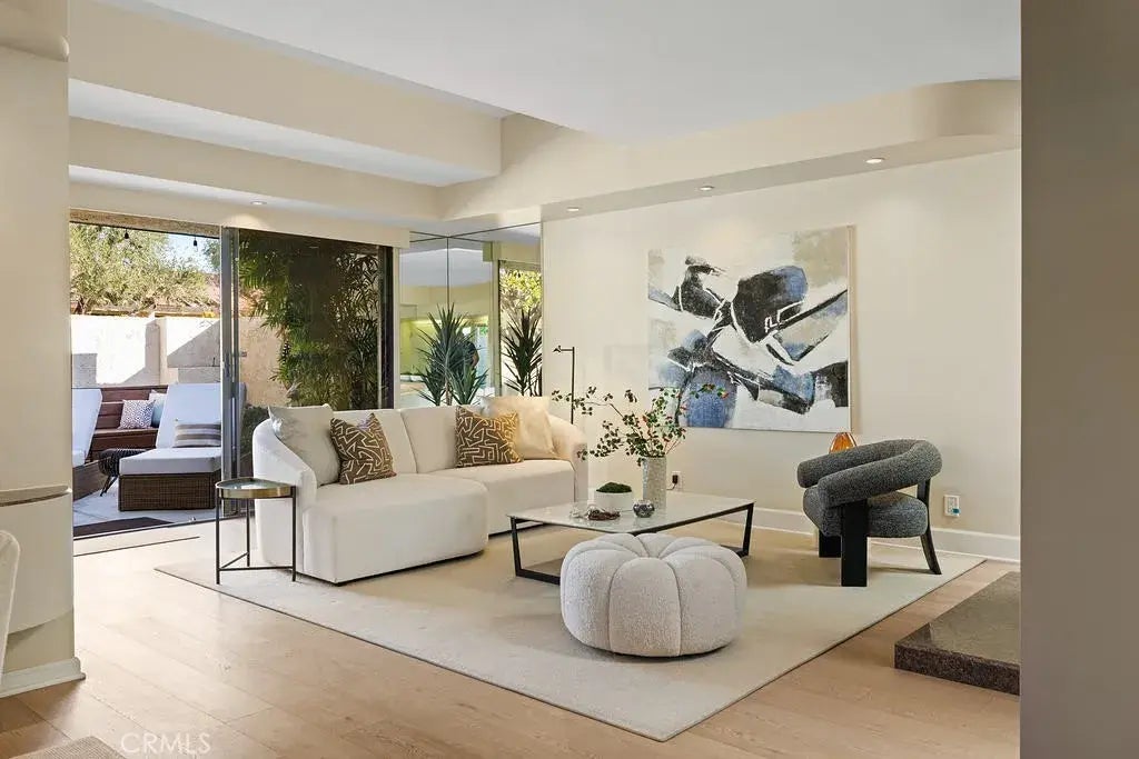 This beautifully designed single-story condo offers the perfect blend of architectural charm, designer finishes, and breathtaking mountain views. A rare find, this home includes an extended double garage, providing ample storage and convenience. Step inside to discover engineered wood floors throughout the kitchen and living spaces, complemented by elegant wool area rugs. The light-filled living room boasts soaring ceilings, a gas fireplace with granite surround, an adjacent wet bar, and direct access to a spacious wrap-around patio with a sturdy pergolaperfect for entertaining. A separate den/media room features a skylight with a motorized shade and access to a third bathroom. The luxurious owners suite showcases vaulted wood ceilings, a stylish wood accent wall, multiple closets, and a spa-like private bath with dual sinks, a walk-in shower, and a soaking tub. The guest suite also includes a private en-suite bath with a walk-in shower. Enjoy resort-style living with community pools, a spa, tennis courts, and a clubhouse. Land Lease through 2068. $4453 Annually Conveniently located just five minutes from the airport and near downtown, shopping, fitness centers, and medical facilities.