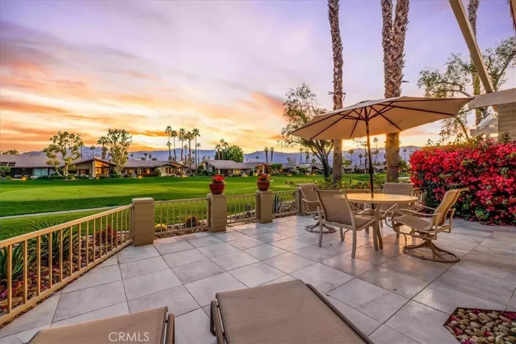 Welcome to the Lakes Country Club where this approximately 1,550 sq ft, 2 Bedroom, 2 Baths, Pueblo floorplan provides relaxing indoor-outdoor living. The South-facing patio graces lush fairways with stunning views of the Santa Rosa Mountains and coveted evening sunsets. The private front courtyard offers a serene, private retreat complete with market lights for al fresco dining. In addition, there is a gas grill and fire table with a hard gas line. Upon entry you will note the expansive feel of the vaulted ceilings and open floorplan. The kitchen is finished with custom cabinets, quartz countertops and stainless steel appliances. With a bar-height counter and opening to the dining and living room, this space is perfect for hosting small or larger gatherings. Two primary suites, with ensuite bathrooms, provide privacy and nice separation for guests. Neutral, porcelain tile throughout creates a seamless flow throughout the home. This move-in ready, turnkey furnished home is offered complete with a golf cart. Start enjoying The Lakes Lifestyle on Day 1! The Lakes Country Club offers a robust schedule of social and fitness activities at the exquisite Clubhouse and Health and Wellness Center. Enjoy Tennis, Pickleball or Pop Tennis, Bocce or the 44 community pools and spas. For golfers, the Club offers membership options for the 27 hole championship golf course. Dont miss this rare opportunity schedule your private tour today and make your dream home a reality!