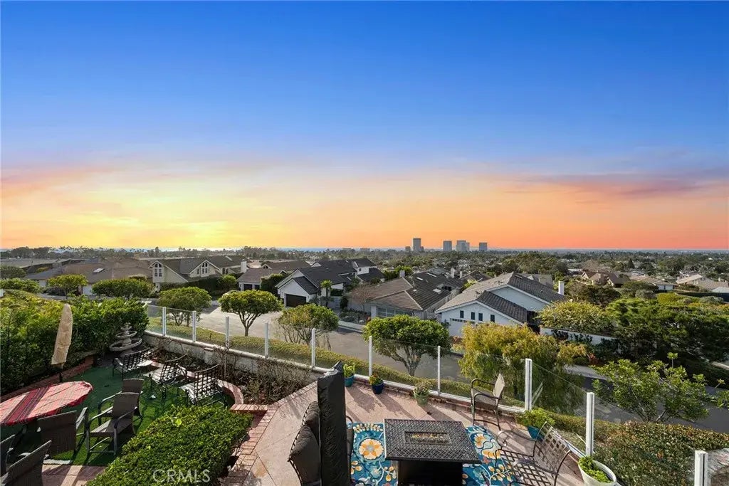 Perched in the prestigious guard-gated Seaview community, this expansive approximately 3,800 sq. ft. home offers breathtaking panoramic ocean, Catalina Island, city lights and Fashion Island views. Rarely found in the neighborhood, this spacious residence boasts five bedrooms plus an officepotentially six bedroomsmaking it one of the largest homes in Seaview. Nestled on a quiet, single-loaded cul-de-sac, this beautifully maintained property exudes warmth and character. Inside, hardwood floors flow throughout, complementing the inviting interior with elegant French doors. The gourmet kitchen, with charming brick flooring and crisp white cabinetry, opens to a light-filled living room where floor-to-ceiling windows frame the stunning coastal views. The flexible floor plan includes two bedrooms, a bathroom, and a laundry room on the main level, while upstairs, three additional bedrooms awaitincluding a spectacular primary suite with a private deck showcasing uninterrupted ocean vistas. Step outside to the lush, tranquil patio, designed for effortless entertaining with a built-in barbecue, beautifully manicured grounds, and sunset views that will take your breath away. Fabulous community amenities include a pool, spa and tennis courts. Just minutes from Fashion Island, world-class beaches, Pelican Hill, Corona del Mar, and Balboa Island, this exceptional home offers the best of Newport Beach living. A truly special opportunityexperience these mesmerizing views in person!
