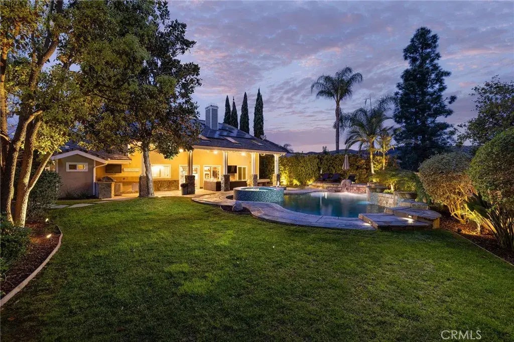 Expanded and rebuilt in 2004, this extraordinary property embraces luxury, sustainability, and the convenience of generational livingall in one exceptional home with an outdoor sanctuary ideal for entertaining and relaxation. Positioned on a spacious 12,000-square-foot lot, this reimagined home provides unparalleled craftsmanship and offers a versatile floor plan with the option of one or two distinct residences. You may enjoy a single 3,929 sq. ft. residence with six bedrooms and four baths, or, if you prefer, you can lock off one interior door to create a single-level, 479 sq. ft. mother-in-law quarters with its own private exterior entrance, kitchen, living area with a cozy fireplace, bedroom, bath, and laundry. Step inside the main residence through a striking leaded glass entry door into a welcoming two-story foyer. The home is accentuated by travertine flooring, custom iron railings, and refined crown molding. It boasts exquisite formal dining and living rooms that set an elegant tone. The family room features a cozy fireplace surrounded by a custom built-in, creating a warm and inviting space for gatherings. It is open to the gourmet chefs kitchen, which is outfitted with top-of-the-line stainless steel appliances, a gas cooktop, vent hood, double ovens, and a microwave. Granite countertops and a spacious kitchen island complete the space, making it both functional and stylish. Enjoy a resort-style, professionally designed rear yard with a large covered patio, an outdoor kitchen perfect for entertaining, a grassy yard, a fire pit, and a sparkling pool and spa enhance