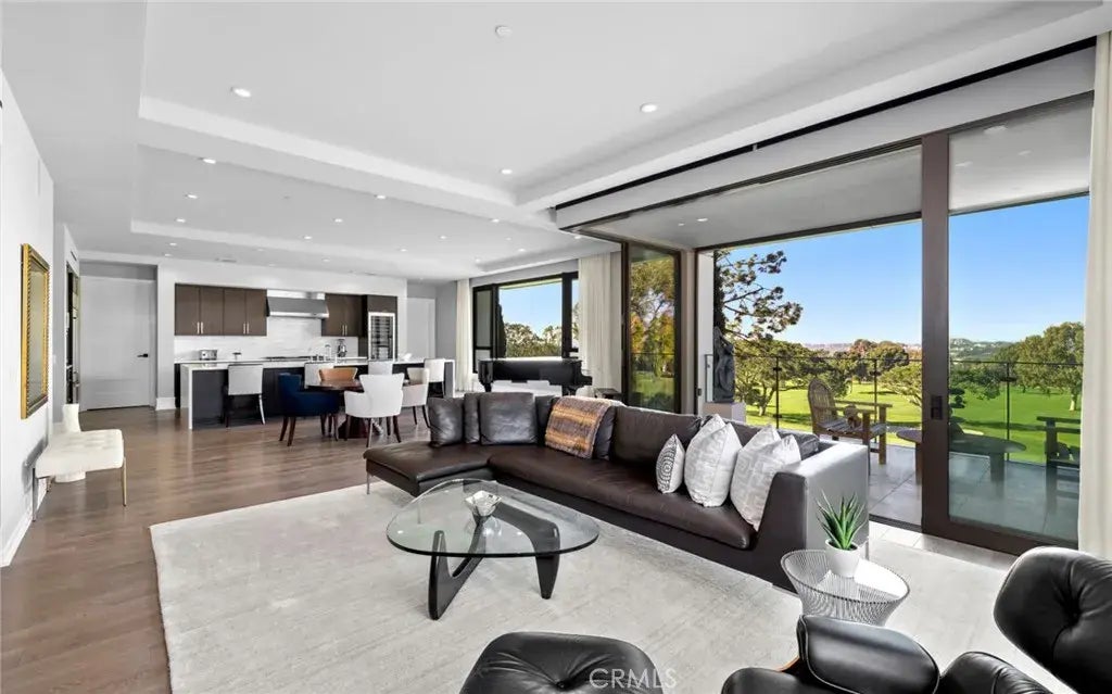 Offered unfurnished or furnished on an annual basis (not a short-term rental), featuring luxurious living in the impeccably designed Meridian Newport Beach, overlooking the Newport Beach golf course and ocean horizon panoramas. Discover sleek touches throughout its open-concept layout, from the stylized ceilings with recessed lighting to the stunning hardwood floors. Walls of glass usher in abundant sunlight while capturing breathtaking outdoor views you can admire from the main gathering areas. High-quality Wolf appliances await in the chef's kitchen, which can accommodate lucky guests at its oversized island. La Cantina multi-slide doors open to the balcony, perfect for unwinding in the afternoon. Immaculate finishes and must-see features are displayed in the two bedrooms, plus an office/possible third bedroom and three full baths, including a large walk-in closet with built-in organizers and tastefully tiled accent walls. Enjoy access to world-class amenities in the complex, including 24-hour security, private parking, a fitness center, BBQ area, outdoor fireplaces, a junior Olympic pool, and a clubhouse. Come live in the epicenter of Newport Beach, Fashion Island, Newport Center, and only moments away from world-class beaches and the harbor.