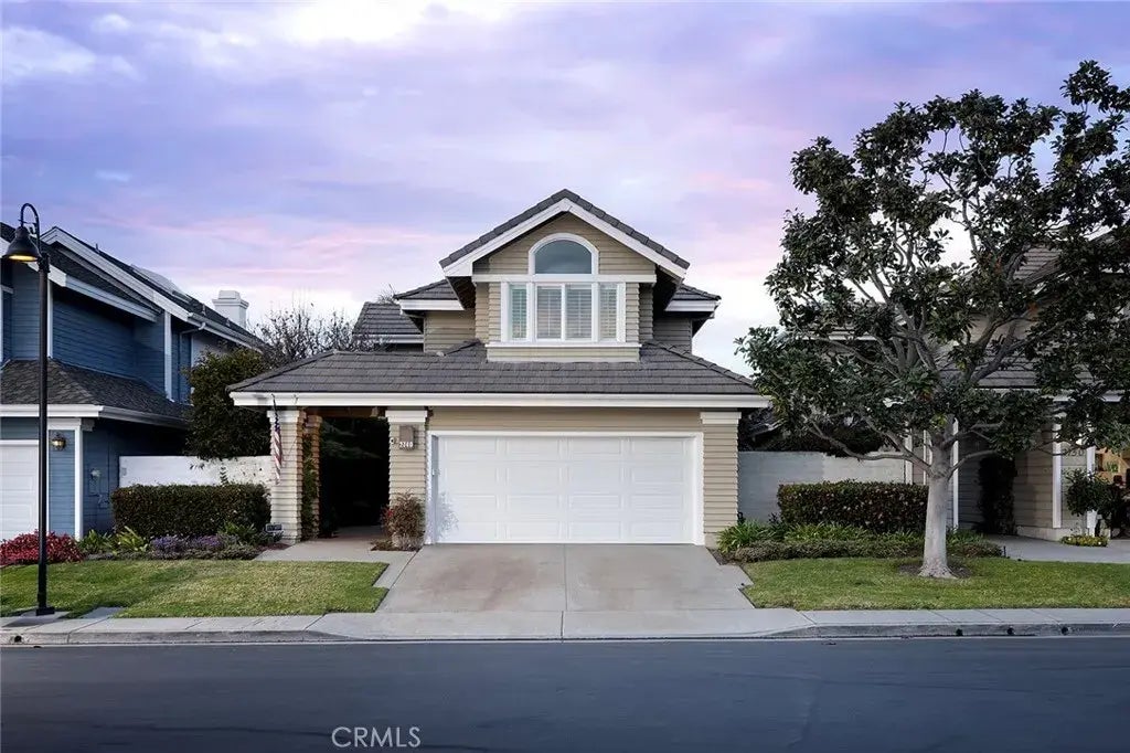 Elegance and coastal charm converge in this thoughtfully designed three-bedroom, two-and-a-half-bath residence. A private, enclosed entrance welcomes you into a home where classic traditional siding and expansive windows allow natural light to pour into approximately 1,933 square feet of refined living space. Curated for both style and comfort, the interiors are adorned with luxury vinyl flooring, recessed lighting, high ceilings, plantation shutters, and crown molding. A fireplace-warmed living room serves as the heart of the main level, offering a cozy gathering space. Just beyond, the well-appointed kitchen features KitchenAid and Bosch stainless steel appliances, marble-style quartz countertops and backsplash, and an abundance of white cabinetry. Sliding glass doors seamlessly extend the living space outdoors, where a private backyard retreat with lush landscaping invites intimate gatherings or tranquil moments of relaxation. Upstairs, a built-in workstation provides a convenient work-from-home space. Further along, a large primary suite unfolds beneath a beamed ceiling with an en suite bath is bathed in natural light from a skylight and features dual sinks, a walk-in shower with dual showerheads, and a spacious walk-in closet. Additional highlights include a convenient main-level laundry room and a two-car attached garage. Perfectly positioned in a coveted location, this residence is just a short stroll from an array of dining, boutiques, Fashion Island, Grant Howald Park, Jasmine View Park, Harbor View Elementary School, and the golden sands of Corona del Mar Beach.