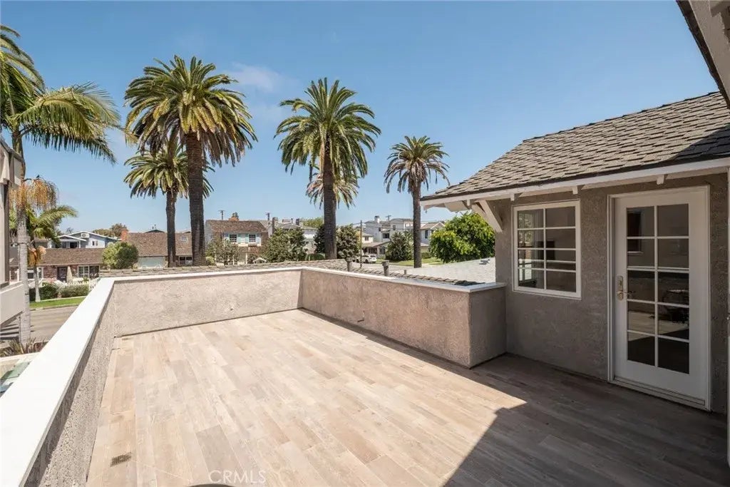 Enter through your downstairs entrance where you will find a ground floor bedroom with an ensuite bath. Also on the ground floor is the attached garage (1 space for the back house), with laundry. Upstairs is the main living space - light wood flooring throughout, an open floor plan with high ceilings, and a living room open to the dining area and kitchen. A patio perfect for outdoor dining is off of the dining area and off of the upstairs office (optional bedroom) with built-ins and tons of natural light - the upstairs enjoys a nice breeze with all the doors on this level. Bathroom of the office with fully tiled step in full shower and dual sinks plus vanity and toilet heating towel rack. Down the hall is the primary bedroom with lots of light and peaked roof high ceilings, an oversized and fully built out walk-in master closet with beautiful hard wood cabinets and lighting. There is a Juliette balcony off the master for additional light & a nice ocean breeze. The primary en-suite features a luxurious jetted soaking tub, heated towel rack, dual sinks & lots of space to relax. The kitchen features all stainless steel appliances , two Wolf ovens, a warming drawer, built in microwave, a LG large refrigerator & a double sink- the kitchen opens up to the large front patio which is tiled with gorgeous hardwood like tile. Enjoy your fireplace while watching TV on the big screen with built-in speakers for surround sound!