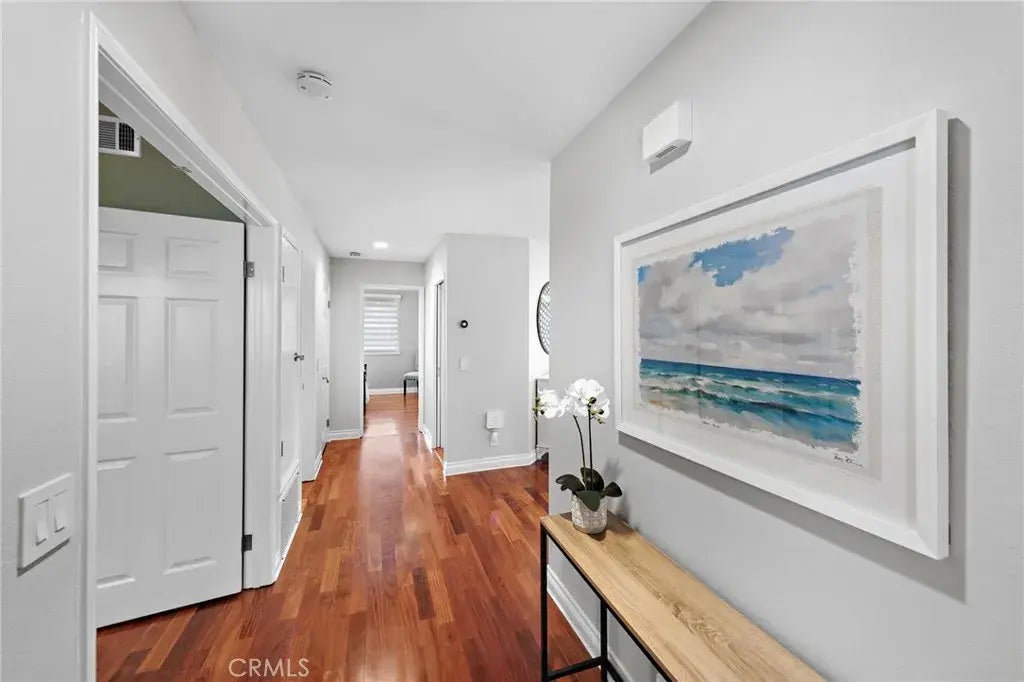 497 Morning Canyon is an impeccably updated, light, and bright 2 bed, 2 bath corner condo in Corona del Mar steps from beautiful area beaches, restaurants, and shops. Its open-concept design features stunning Brazilian Mahogany hardwood floors, quartz counters and a chef's kitchen with Thermador and Bosch stainless appliances, and a wine refrigerator. A large private patio is perfect for outdoor entertaining. Additional perks include an in-unit washer and dryer, gated 2-car subterranean parking, an extra storage closet, and an elevator. Available furnished or unfurnished for long-term lease.