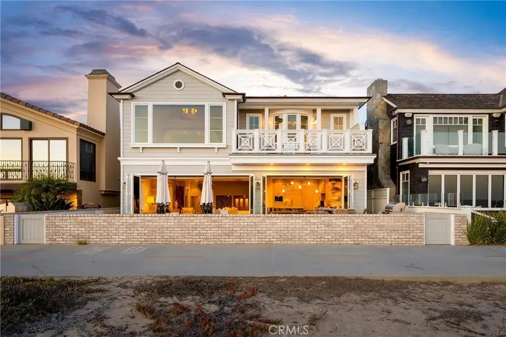 Experience the ultimate coastal living experience in this impeccably built, fully furnished 5-bedroom, 5.5-bathroom home, perched on one of the most coveted stretches of Newport Beach's iconic Balboa Peninsula. With panoramic views of the sand and the sparkling Pacific Ocean, this home sets the standard for luxury and sophistication. Boasting a rare double lot and one of the highest elevation lines on the Peninsula, this property offers unparalleled vistas and privacy. Every aspect of this custom residence has been thoughtfully curated by renowned interior designer Jeff Andrews of Jeff Andrews Design. The open-concept main floor invites effortless entertaining, with a state-of-the-art gourmet kitchen featuring top-tier appliances and an expansive living and dining area complete with a custom fireplace. Accordion doors open to the private patio, ideal for al fresco dining with a Wolf BBQ, multiple seating areas, and a fire pit for cozy evenings by the sea. The lower level features a sophisticated bar, a versatile salon or office space, a powder room, and convenient access to the two-car garage and one of two laundry rooms. The first set of stairs leads to three spacious bedrooms, each with en-suite bathrooms and walk-in closets. For ultimate ease, an elevator provides access to the second floor, where you'll find a secondary family/entertainment room preceding the grand master suite. The master retreat boasts breathtaking ocean views, a hidden TV, and a private balcony. The spa-like master bath features a large walk-in shower, a freestanding tub, and luxurious custom tile. A