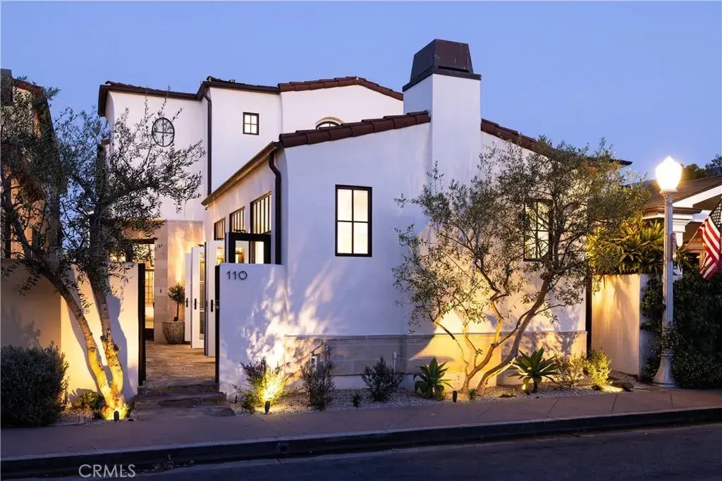 Nestled in the heart of picturesque Lido Island, 110 Via Orvieto is a custom Spanish-style residence that beautifully blends timeless elegance, coastal charm, and refined Mediterranean design. Ideally situated mid-island on a desirable street-to-street lot near a serene bayfront park, this exquisite home is a true sanctuary by the sea. Framed by mature olive trees and thoughtfully designed drought-tolerant landscaping, the striking stucco faade sets the tone for the sophistication within. A private, code-secured wooden gate opens to a tranquil courtyard, where a custom stone fountain welcomes you with soothing ambiance as you approach the arched entry. Inside, the home is filled with natural light and warmth, featuring stone floors, soaring vaulted beamed ceilings, and expansive windows and doors that create seamless indoor-outdoor flow. The open-concept layout includes four bedrooms and four bathrooms, centered around a spacious great room with a cozy fireplace and French doors that open to the lush courtyardperfect for entertaining or quiet relaxation. The adjacent dining room and breakfast bar connect effortlessly to the chefs kitchen, appointed with marble countertops, a center island, professional-grade Thermaodr appliances, dual sinks, wine storage, and a generous walk-in pantry. A secluded main-level bedroom, currently configured as a home office, features new designer carpeting and serene privacy. Upstairs, a graceful wood staircase leads to two spacious secondary bedrooms, each with en-suite baths and walk-in closets. The inviting primary suite is a retreat of its