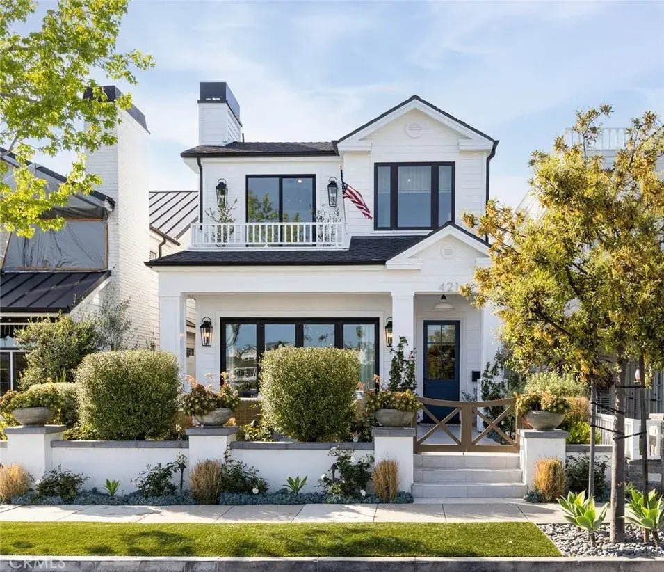 Welcome to 421 Begonia Avenue, a stunning custom-built residence in the coveted Flower Streets of Corona del Mar. This ocean and harbor-view home offers an unparalleled living experience with luxurious finishes, modern upgrades, and exceptional attention to detail. Boasting approximately 3,250 square feet of living space, this home features three beautifully appointed bedrooms and three and a half baths. Recent designer updates include new tile, marble backsplash and countertops in the bathrooms, custom stone fireplaces, Phillip Jeffries wallpaper, Conrad window treatments, custom draperies, sophisticated lighting fixtures, and lush new landscaping, enhancing both curb appeal and privacy. The homes open floor plan seamlessly blends sophistication and comfort, with natural light pouring through expansive windows and concertina doors that open to the front patio, inviting you to enjoy year-round indoor/outdoor living. The luxurious living room flows to an elegant formal dining room. The chefs kitchen, equipped with top-of-the-line Bosch, Sub-Zero, and Wolf appliances, a large central island with seating and ample cabinetry, is a true culinary haven. A comfortable family room off the kitchen provides an additional space to enjoy and relax. A convenient elevator services both levels, ensuring easy access throughout. Upstairs, the primary suite is a luxurious retreat, complete with a private balcony, cozy fireplace, and a spa-like bath featuring a soaking tub and walk-in shower. Two additional bedroom suites, each with their own elegant touches, and a large bonus room with a fir