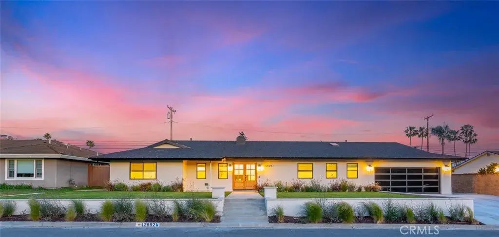 Welcome to 12592 Singing Wood Dr a stunning single-story estate nestled in the highly sought-after North Tustin community. This beautifully upgraded 3,185 sq ft home offers 5 spacious bedrooms, 5 well-appointed bathrooms, and a thoughtfully designed open floor plan perfect for both everyday living and entertaining. Step through the front doors and immediately feel the warmth of natural light pouring in through expansive windows, creating an inviting and airy atmosphere throughout. Elegant wood flooring, oversized baseboards, and clean, modern lines set the tone for the sophisticated yet comfortable interior. The heart of the home is the gourmet chefs kitchen a true culinary dream featuring a massive center island, sleek quartzite countertops, a walk-in pantry, and an abundance of custom cabinetry. High-end appliances include a Sub-Zero refrigerator, Caf double oven, dual dishwashers, a built-in microwave/oven combo, and an ILVE 8-burner stove, all designed to elevate your cooking experience. The kitchen flows seamlessly into a grand family room with soaring 18-foot ceilings, exposed wood beams, and a striking natural stone fireplace a perfect blend of charm and modern elegance. The homes layout is both functional and private, with three guest bedrooms on one wing including a junior suite with an en-suite bath while the luxurious primary suite is tucked away on the opposite side. The spacious primary retreat boasts vaulted ceilings, a walk-in closet, and a spa-inspired en-suite bath with dual vanities, illuminated mirrors, a soaking tub, and a walk-in shower wrapped in