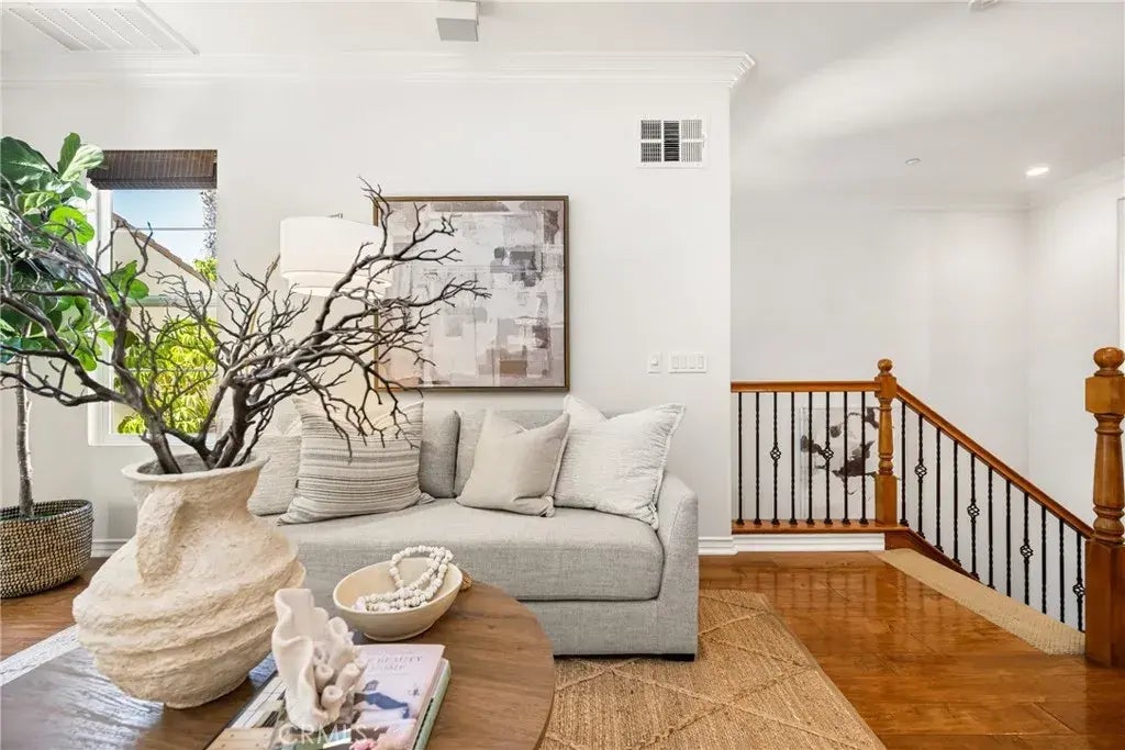Discover coastal elegance in this beautifully curated residence within The Waterfronta private, resort-style enclave just moments from the sand and surf. With 1,843 square feet of thoughtfully designed living space, this 2-bedroom, 3-bathroom home blends modern comfort with an unbeatable location in one of Southern Californias most coveted coastal communities. Enter to find a spacious open-concept layout bathed in natural light, enhanced by dual-pane windows, fresh designer paint, and rich wood flooring. The chefs kitchen opens to a custom-built office nook and features stainless appliancesperfect for entertaining or everyday living. Upstairs, the expansive primary suite offers a peaceful retreat with a large walk-in closet and a luxurious en-suite bath complete with a soaking tub, separate shower, and dual vanities. A generously sized second bedroom with its own full bath provides ideal accommodations for guests or family. Enjoy your morning coffee on the private balcony overlooking a tranquil courtyard with fountains, or relax on the oversized patio surrounded by lush landscaping. Additional highlights include central AC and heat, an in-home laundry room, and a pristine attached 2-car garage with epoxy floors and built-in storage. Residents of The Waterfront enjoy access to a stunning resort-style pool and spa, impeccably maintained grounds, and gated securityall within close proximity to Pacific City, the iconic Huntington Beach Pier, and premier events like the, Pacific Airshow, US Open of Surfing, Surf City Marathon, and 4th of July festivities. This is coastal living