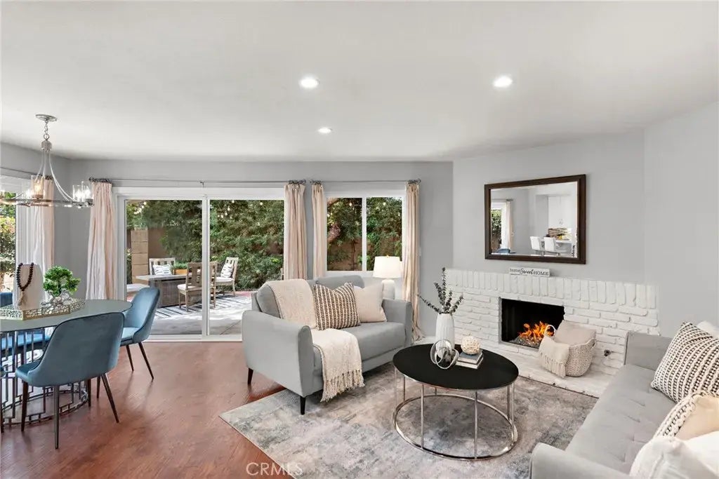 Located perfectly in the heart of Eastside Costa Mesa, this 3-bedroom, 2.5-bath residence offers a bright, comfortable layout with tasteful upgrades and effortless coastal charm. Spanning approximately 1,472 square feet, the home welcomes you with warm wood flooring, recessed lighting, and a cozy fireplace that anchors the open-concept living and dining areas. Sliding doors lead to a wraparound patio, an ideal extension of the main level, perfect for outdoor entertaining or relaxing retreats. The kitchen features white shaker cabinetry, stainless steel appliances, designer tile backsplash, and a breakfast bar for casual meals or conversation. Upstairs, the primary suite includes a remodeled ensuite bath and custom closet organizers, while a nearby laundry area adds everyday convenience. Additional highlights include dual-pane windows and sliders, air conditioning, a tankless water heater, and Ring security. A private one-car garage with overhead storage, carport, and guest parking complete the package. Located in the Cedar Glen community, residents enjoy access to a swimming pool, spa, BBQ area, and a very well manicured and maintained community. Welcome home!