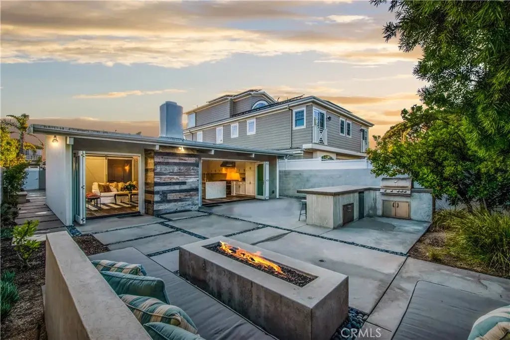 Steps from the Surf, Designed for Coastal Living. Just 200 steps from the beach, this stylish single-level home in the sought-after enclave of Lido Sands blends timeless mid-century appeal with modern coastal luxury. Originally envisioned by acclaimed architect Quincy Jones, the home was taken down to the studs and thoughtfully reimagined approximately seven years ago. The result is a beautifully rebuilt 3-bedroom, 2-bath residence that celebrates indoor-outdoor living with both charm and sophistication. Set on a generously sized lot, the home offers an abundance of private outdoor space rarely found this close to the sand perfect for relaxed entertaining under the stars or enjoying ocean breezes beside the firepit. A 27-foot wall of retractable La Cantina doors opens seamlessly to the spacious backyard, which features a custom built-in BBQ, cozy seating areas, and lush privacy. Inside, the open-concept layout flows effortlessly and showcases high-end finishes throughout: reclaimed Wisconsin barn-wood flooring, an 8-burner Wolf range, Sub-Zero fridge/freezer, Bosch dishwasher, Sharp microwave drawer, Shaw farmhouse sink, custom cabinetry, and stone countertops. The inviting Dutch door entry, custom windows, and outdoor shower reflect the thoughtful details designed for beachside living. Additional highlights include a finished 2-car garage with epoxy floors and storage, and access to community amenities including a private pool, brand-new clubhouse, and park. This is a rare opportunity to enjoy the best of Newport Beach in effortless style.