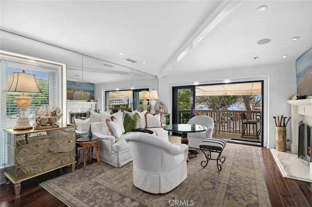 Elegance blended with beach casual describes this gated Bayside Cove property. Recently refreshed, the residence has the ultimate direct bay water view from the living room and outdoor patio - complete with a retractable awning. You can find two master suites within, one on each level, each with their own marble bathrooms; one having a huge soaking tub and the other a luxurious steam shower. The upstairs main living area is an open floor plan which includes a large pantry/laundry area and a custom kitchen with solid wood cabinets, a French La Cornue hand crafted range and hood, and Sub-Zero fridge. Beautiful hardwood floors take you down a dramatic staircase to a unique den, the second master suite, and a charming outside patio with new voltage lighting and dog run area. Being that it is a corner lot, direct access to the two car garage proves to be very easy backing in and out of. Take in the luxuries of the bayfront community clubhouse - complete with a new resort-like pool, lounge area, and private sandy beach. Just a short walk to Balboa Islands charming shops and fine dining, this residence offers the perfect opportunity to experience relaxed coastal living in a prime Newport Beach location.