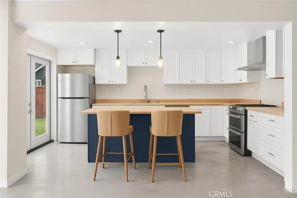 Live local in Belmont Heights! This brand-new 2 bedroom, 1 bathroom ADU packs smart design into 743 square feet and lives much larger thanks to it's open layout and indoor-outdoor flow. The kitchen takes center stage with its navy island, butcher-block countertop, white shaker cabinets, stainless steel appliances, and pendant lighting - perfect for weeknight meals or weekend hangs. Polished concrete floors add a clean, modern touch and are easy to maintain. The bathroom is thoughtfully designed, featuring a walk-in tiled shower, darling vanity, and bright lighting. Two bedrooms with great natural light offer flexibility for sleeping, working from home, guests, or extra storage. French doors open to a fenced shared backyard with a grassy lawn - ideal for morning coffee, a pup play break (yes, pets are permitted!), or a relaxed BBQ. Shared washer and dryer on-site for added convenience. All of this in a super walkable pocket of Belmont Heights - close to 4th Street/Retro Row restaurants, coffee shops, wine bars, vintage finds, and minutes to the beach, Belmont Shore, and Bluff Park. If you're looking for a move-in-ready space in one of Long Beachs most sought-after neighborhoods, you just found it!