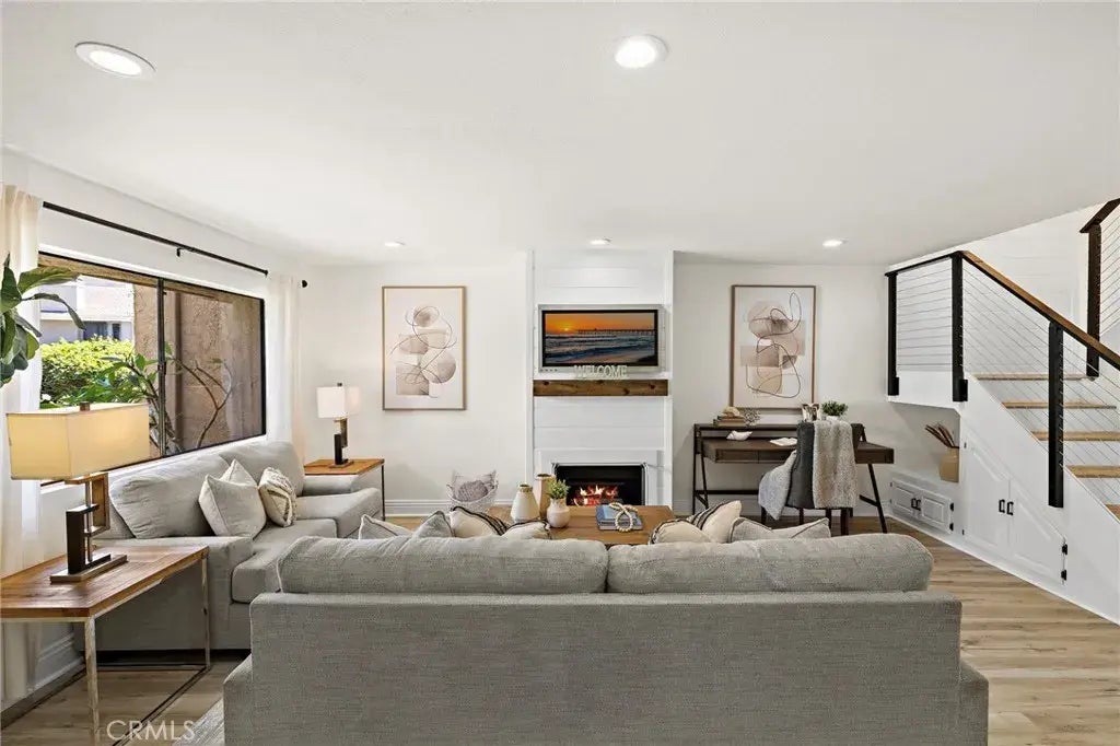 Prepare to be dazzled! Welcome to 4 Riptide Court, the largest floor plan in the Newport Terrace community, thoroughly remodeled with premium finishes, making it amongst the most impressive in the neighborhood. This spacious 3-bedroom, 2.5-bath condo features expanded living space, refined upgrades, and a layout that balances openness with functionality. New flooring throughout, custom finishes, and thoughtful design choices elevate all spaces. The main level offers a generous living area with a modern fireplace and seamless indoor-outdoor flow to a private rear patio and garage. The fully remodeled kitchen showcases sleek cabinetry, quality stainless steel appliances, striking countertops, and a custom tile backsplash. Upstairs, the oversized primary suite boasts vaulted ceilings, a premium en-suite and generous closet space. Two additional bedrooms share a well-appointed full bath, offering flexibility for guests, a home office, or creative space. Every detail reflects quality and care, making this home truly unique and turn-key. Bordered by the Talbert Nature Preserve and Canyon Park, Newport Terrace surrounds itself with miles of trails, bike paths, and direct access to the Santa Ana River Trail leading to the sand. Community amenities include two pools, a spa, sport court, and lush green spaces surrounded by mature trees, a coastal setting that feels private yet connected. Welcome to 4 Riptide Court delivering an exceptional blend of location, space and style!