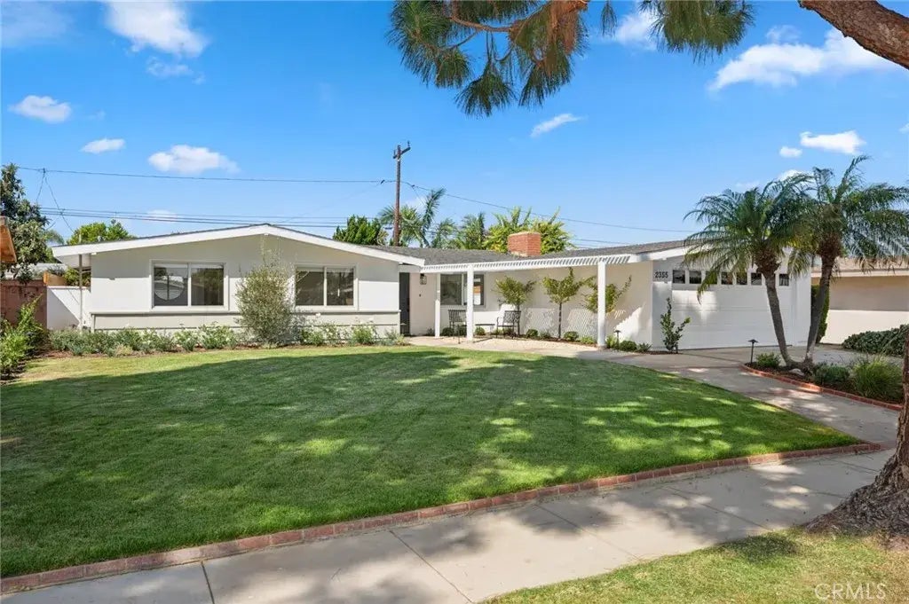 Nestled on a quiet street in the highly desirable College Park community, 2355 Rutgers Drive is a completely reimagined and beautifully remodeled four-bedroom, two-bathroom home. The residence sits gracefully behind an expansive front lawn with a charming pergola-shaded sitting area, setting the tone for the warmth and character found inside. Step through the front door and instantly feel the heart of the home. The oversized great room is filled with natural light and anchored by a gas-burning fireplace, with new luxury vinyl plank flooring throughout creating seamless flow for both everyday living and entertaining. The newly expanded kitchen is a true showpiece, featuring open and closed shelving, striking porcelain countertops, designer pendants, a Shaws farm sink, and an oversized island ideal for both meal prep and casual dining. An eclectic tile backsplash extends to the ceiling, complementing the all-new appliances and thoughtful design. Just off the kitchen and living room, the dining area opens through sliding doors to a newly landscaped and paved side courtyardperfect for al fresco dining. The outdoor spaces are equally inviting, with a sparkling pool and diving board, multiple lounging areas, and additional patios for entertaining. Inside, the bedrooms are spacious retreats, while both bathrooms have been stylishly reconfigured with custom vanities, designer lighting, and curated finishes. Every detail of this home has been thoughtfully crafted, making it truly the jewel of College Park.