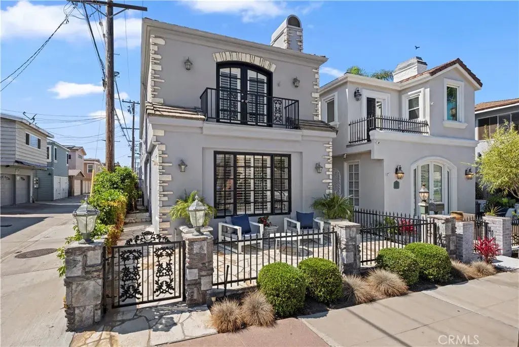 Just steps from the sand, this coastal residence is sited on a coveted corner setting, flooding the interiors with natural light, openness, and privacy. Offering 4 bedrooms, 3.5 baths, and approximately 2,782 square feet, the home is defined by soaring ceilings, hardwood floors, and walls of windows throughout. The main level provides a spacious front living room anchored by custom built-ins and a fireplace with mantel, seamlessly flowing to the formal dining area. A large kitchen is appointed with custom cabinetry, granite countertops, dual ovens, an expansive island with storage, and generous counter space. The adjoining family room, with built-in entertainment center and direct patio access, creates a perfect environment for relaxed gatherings. Upstairs, the private primary wing offers a spa-inspired retreat with dual vanities, Jacuzzi tub, and walk-in shower. Three additional bedrooms include one ensuite and two connected by a Jack-and-Jill bath, complemented by a versatile office nook. Outdoor living takes center stage with a welcoming front patio and a rooftop deck capturing panoramic ocean and coastline views. A two-car garage, powder bath, and central air conditioning enhance comfort and convenience. Set within the vibrant Seal Beach community, residents enjoy pristine beaches, scenic parks, nature preserves, and a lively mix of dining and shopping, all just moments away.