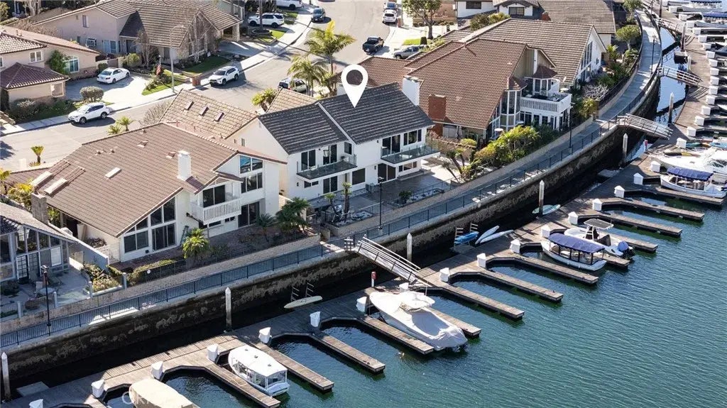 Live the ultimate Huntington Beach lifestyle in this waterfront Trinidad Island home with your own personal dock directly outside the back door.This beautiful Trinidad Island WATERFRONT Home is complete with a 180-degree view of the water, was recently remodeled, and is lovingly maintained! The Trinidad Island Lifestyle is amazing, featuring a beach, two playgrounds, large greenbelts, and waterfront path perfect enjoying the outdoors with your pets/friends, creating ample opportunities for an active lifestyle. Trinidad Island is one of the most wonderful neighborhoods in Coastal Orange County and is located within the award-winning Harbor View School District. The Gorgeous home is perfect for entertaining offering nearly 3,400 square feet of living space and a 3-car garage with additional space in the driveway. This gorgeous home is complete with an Open Concept floorplan including 4 spacious bedrooms, 3.5 bathrooms and has been beautifully maintained! The main level features a stunning front swinging door entry, large formal living room, formal dining perfect for entertaining, a bar, MAIN LEVEL BEDROOM AND FULL BATH + separate powder room, walk-in laundry room, and a light and bright kitchen open to the breakfast nook & family room. The gourmet kitchen features gorgeous countertops, a large pantry with a wine refrigerator and professional quality stainless steel appliances: built-in refrigerator, cooktop, microwave, oven, & dishwasher. Ascend the stairs to find a truly luxurious primary bedroom with full width waterfront views, retreat with fireplace, balcony, large walk-i