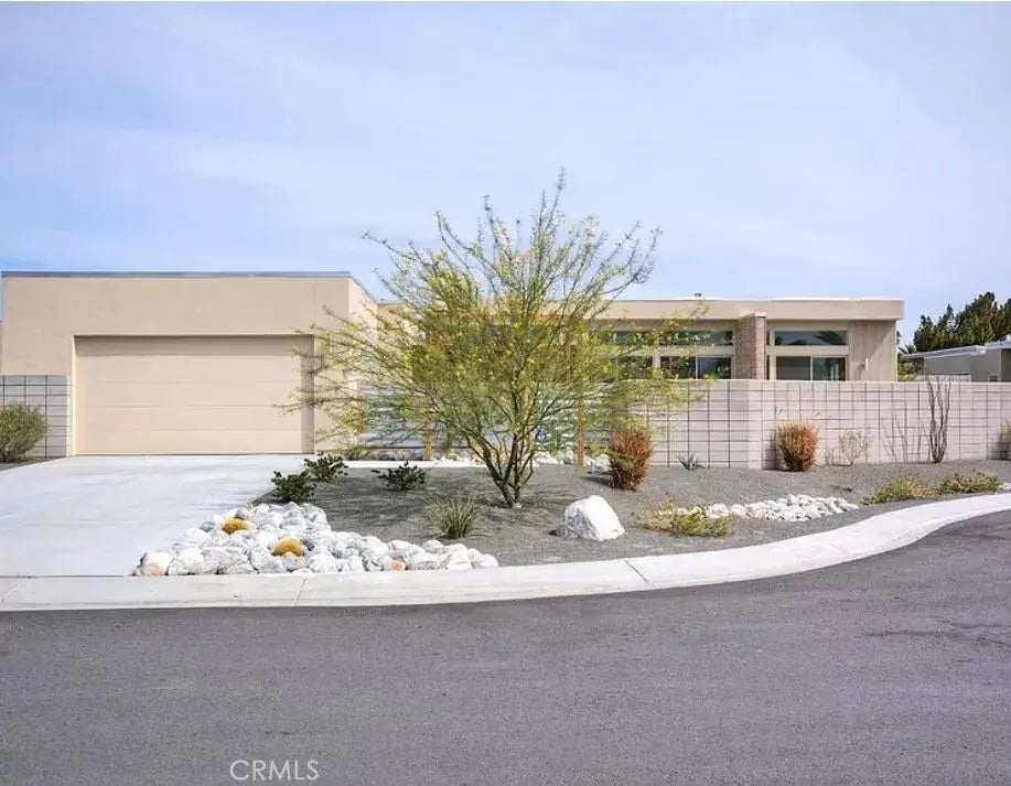 Nestled in Palm Springs scenic Murano development, this modern home, built in 2014, blends mid-century architectural charm with todays energy-efficient amenities. Set on a generous 0.34-acre lot (over 14,800 sq ft), the property offers private outdoor living with pool, spa, and a built-in fire pit, all framed by sweeping views of Mount San Jacinto. Inside, youll find a light-filled open floor plan with clean lines, high ceilings, and polished concrete floors that give it a sleek and spacious feel. The home features 3 bedrooms and 3 bathrooms, with the primary suite enjoying easy access and views of the pool/spa area. Additional perks include attached two-car garage, solar panels (owned), central heating & cooling systems, and no HOA.