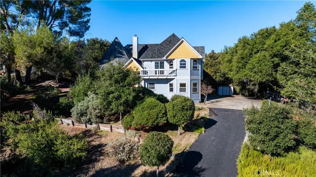 Discover this classic, but modern Victorian-style home atop nearly an acre of land w/detached studio or office! This beautifully upgraded split-level home features 3 bedrooms + bonus room, 2.5 baths & a detached air-conditioned office or artist's studio w/half bath. Light & bright with high ceilings & engineered hand-scraped hickory flooring, and tons of windows peering out into nature, this charming property offers peace and beauty throughout. The living room features a tiled wood-burning fireplace and arched windows overlooking the easterly hills. The family room has a glass door with sidelights that lead out to the covered porch and usable yard space. Step up to the entertainer's delight kitchen complete w/granite counters, an island with downdraft cooktop, dining space with porch access and an LG refrigerator with craft ice maker. The backyard has ample space to host barbecues, and features flagstone patios with a fire pit. Upstairs includes two guest bedrooms & a full bathroom + an owner's retreat. This ensuite primary has its own bathroom with dual sinks, walk-in closet & a Trex balcony perfect for watching the sunrise over the hills or wine tasting at sunset. The lower level has a bonus room, currently used as an art studio and guest bedroom with nearby utility room plumbed for an additional bathroom if your vision so desires. The detached office is newly plumbed with a half bath (2024), air conditioning (2023), designer padded gym flooring with wood grain design (2021), newer landing and stairs (2023), fresh paint, and could have a multitude of uses. Additional upda