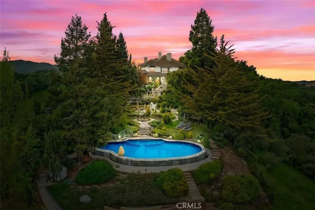 Set in one of Californias most desirable Central Coast regions, this 33 acre estate offers elegance, serenity, panoramic views, and unmatched pride of ownership. Surrounded by lush redwoods, fruit trees, and manicured gardens, the gated and fully fenced property features a Monet-inspired lagoon, koi pond, Japanese meditation house, grotto waterfall, treehouse, and dedicated gym/game areacreating a peaceful, storybook setting. At its heart lies a 7,200 sq. ft. Hampton-style main residence with 5 bedrooms, 6 bathrooms, and a separate en-suite with private balcony. Interiors showcase cherry hardwood floors, exotic stone, and 4 fireplaces. The gourmet kitchen includes high-end appliances, butlers pantry, and designer lighting. Recent upgrades include new hardwood floors, roof, fencing, 3 HVAC systems, pavers, and a 60-panel solar system. Outdoor amenities include an infinity pool/spa with Tuscany-like views, full kitchen, grill, and fireplace. A separate 2,800 sq. ft. guest house with 4 beds/3 baths, 2 barns, horse stalls, and a 300-tree pomegranate orchard add function and flexibility. One barn offers event venue potential. With 4 wells (2 in use) and close proximity to town, this rare legacy property combines privacy, timeless sophistication, and lifestyle or business potential.