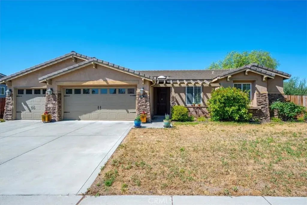 Turnkey Beauty in the Heart of Paso Robles Wine Country! Welcome to this impeccably maintained single-story home nestled in one of Paso Robles' most desirable neighborhoods. Situated on an expansive 10,276 sq ft lot, this light-filled gem offers a fantastic floor plan and true pride of ownership. The spacious kitchen opens seamlessly to the living room, complete with a cozy gas fireplace perfect for both everyday living and entertaining. A convenient pantry and ample cabinetry offer great storage and functionality. The oversized primary bedroom provides comfort and privacy, with French glass doors that lead directly to the serene backyard. The living room also features a French door for easy indoor-outdoor flow. Step outside to a beautifully landscaped, water-wise backyard filled with vibrant rose bushes and fruit trees. A covered patio sets the stage for year-round entertaining. The fully fenced property includes a three-car garage with a wide driveway for added convenience. This home is truly move-in readyclean, comfortable, and full of charm in the heart of wine country.