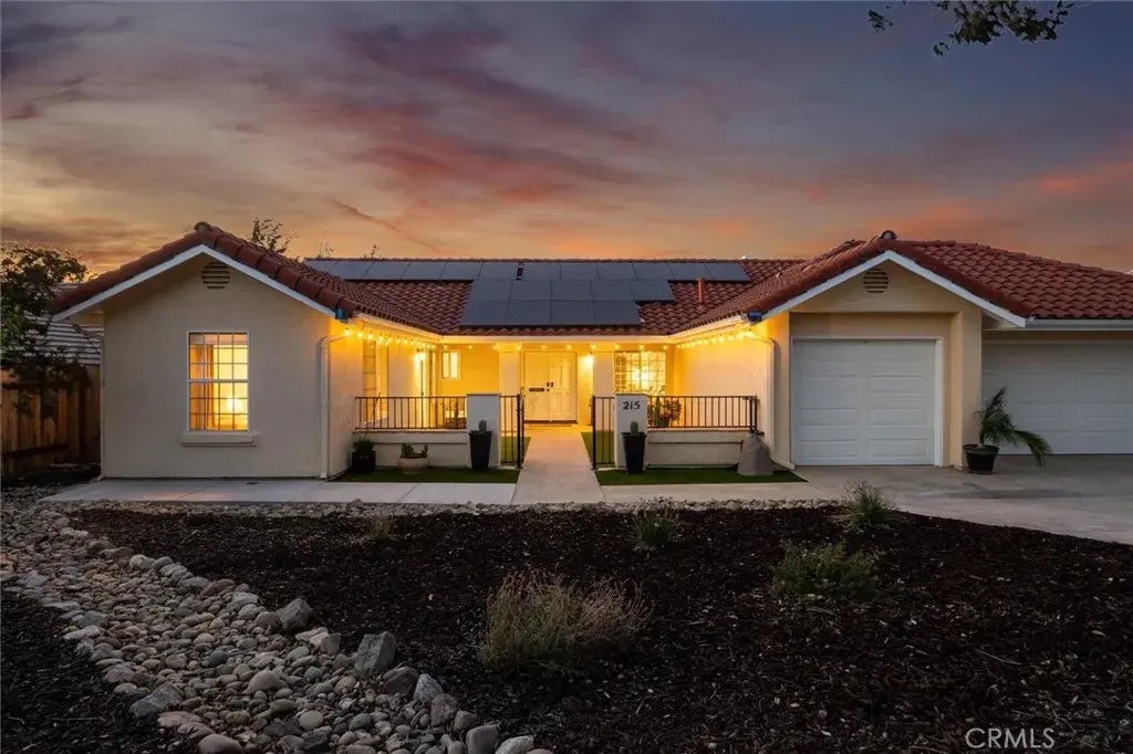 Welcome to 215 Meadowlark Road a remodeled, move-in ready home in highly desirable Paso Robles. This immaculate property has been thoughtfully updated from top to bottom, offering modern style, comfort, and functionality. Inside, youll find a stunning new kitchen featuring quartz countertops, new cabinetry, under cabinet lighting, and brand-new stainless steel appliances. The home boasts new flooring throughout, fresh interior and exterior paint, updated lighting, and all-new blinds with some new windows as well. Both bathrooms have been completely renovated with contemporary finishes, and every detail has been done with care and quality craftsmanship. Significant upgrades include owned solar with battery backup, an EV charger, a newly updated electrical panel with an added subpanel, and a backyard wired for both 220 and 110ideal for adding a spa or swim spa. The outdoor space has also been transformed with extensive concrete work, including an 80-foot stained concrete pad, artificial turf in the front and back, new gutters, and a wrought iron gate at the front entry. A new retaining wall spans the entire length of the backyard, and a freshly installed fence on the left side of the home provides added privacy. The garage features a professionally finished epoxy floor, and theres a designated trash area with a new storage shed for convenience. The property is ideally located across the street from a sought-after elementary school and just minutes from world-class wineries. Set back farther than most homes in the neighborhood due to a beautiful live oak tree at the street, t