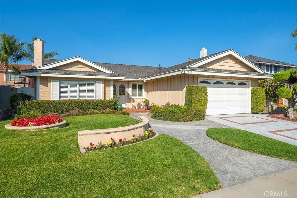 Welcome Home to the One you have been waiting for! This Pristine Home is situated on a Quiet Cul-de-Sac and has been Meticulously Maintained over the Years. The Home is a True Testament to the meaning of "Pride of Ownership"! The Front of the Home features Gorgeous Hardscape complete with Stamped Concrete, Herringbone Brick Details, Lush Mature Landscape and the Double Door entry greets you with Beautiful Beveled Glass Inlay. Once inside, Step into the wide Entryway with Parquet wood floors, a Large step-down Formal Living Room with Stone Fireplace Surround, Large inviting Hearth, Plantation Shutters and Formal Dining Room just off the Kitchen. The Kitchen boasts Oak Cabinetry in Immaculate Condition, Counter Bar Seating, a Spacious Pantry, Off-White Tile Counters, Double Oven, a Huge window that opens to the Backyard with serving area, and is Open to the Family Room. The adjacent Family Room features a Built-in Desk Niche and a Slider to the Gorgeous Backyard. The Home also offers 3 Bedrooms and 2 Baths plus a Inside Laundry Room with Direct Garage Access. The Oversized Master Bedroom has Double Door Entry, a Huge Walk-in Closet, En-Suite Bath featuring a long vanity (with option to install dual sinks) and Step-in Shower. Two Secondary bedrooms are also larger in size. The Guest Bath is Super Clean with Tub/Shower combination, Tile Surround, Glass Enclosure, and White Tile Countertop Vanity and Tile Flooring. The Backyard is Great for Entertaining and Features a Large concrete Patio with Brick Inlay, Wooden Patio Cover, Beautiful Landscape with Large Grassy Area and Fruit