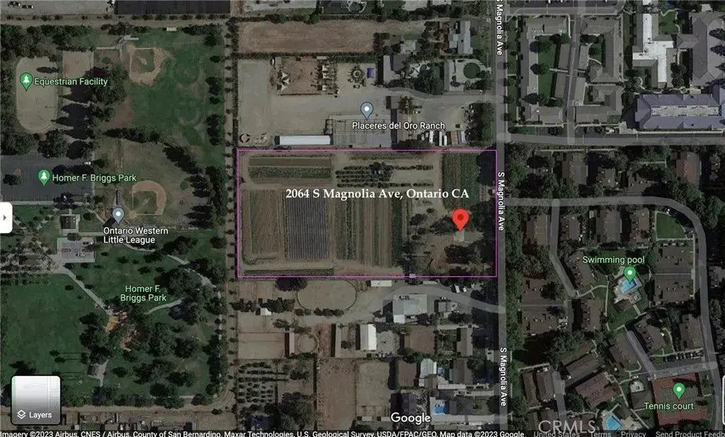 This 4.7-acre property in Ontario, California, offers a unique blend of rural charm, accessibility to amenities, and various development possibilities, making it an appealing option for individuals or investors seeking land for their dream home, multi-family development, farming, or other purposes. 1. Dream Home: You can use this land to build your dream home, customizing it to your preferences and enjoying the peace and quiet of the surrounding neighborhood. 2. Farm Land: If you have a passion for farming or gardening, this land provides ample space for cultivating your favorite plants or crops. It could serve as an ideal location for a small-scale farm. Rural Country Feel: The property is situated in a tranquil and peaceful neighborhood, giving you the rural country feel while still having access to modern amenities and conveniences. Adjacent Park: The property's proximity to an adjacent park is a significant advantage. It offers equestrian trails and an arena, providing opportunities for outdoor activities and recreation. Convenient Location: The property is just a few minutes away from shopping centers, freeways, and the Ontario International Airport, ensuring easy access to urban facilities and transportation. Zoning: The property is zoned AR-2, which permits the construction of single-family homes on lots as small as half an acre. This zoning flexibility provides a range of options for potential development. What are you waiting for?