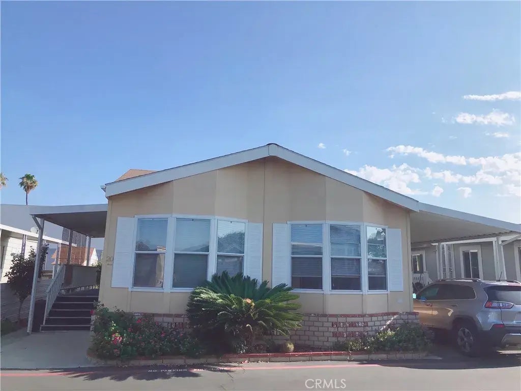 Captivating home blocks away from Knott's Berry Farm! This charming home is located just 5 minutes off the 91 highway and situated at the outskirts of the community, making it an ideal place for peace of mind. This elegant home offers 3 bedrooms, 2 bathrooms, a spacious laundry room, and a large outside storage unit. Some key features include beautiful Real-Oak hardwood floors, three-car parking, and even produce in the yard! This stunning home faces south and features three skylights, offering plenty of natural lighting. Recently replaced the blinds in the living room and kitchen windows. The community features plenty of guest parking, clubhouse, large pool and spa, billiards room, dog area and ALL-AGES community!! Space rent is lower than the mobile home park average for the area.