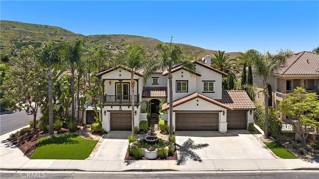 PRICE REDUCTION!! This exquisite residence boasts five bedrooms, three bathrooms, and a four-car garage, situated in the prestigious gated community of San Juan Hills Estates in the historic and picturesque city of San Juan Capistrano. Positioned on a single-loaded corner lot within a cul-de-sac and offering breathtaking views of the city lights and mountains, this lot was selected number one during the initial lot allocation process of development. The meticulously maintained grounds showcase lush landscaping, artificial turf, and mature palm trees. Enhancing the property's already impressive exterior is a family-friendly sport court featuring basketball, volleyball, and pickleball facilities, alongside a tropical pool and spa, a built-in BBQ area, a fire pit, and a palapa bar perfect for enjoying the stunning California sunsets in a relaxing setting. Two sophisticated water fountains adorn the exterior of this remarkable property. The residence boasts five bedrooms, including a downstairs guest bedroom, three baths, and an open, great room design that creates a sense of spaciousness throughout the floor plan. The lower level is accentuated by a wooden built-in entertainment center with three TVs, a gas fireplace, and a separate laundry room. Upstairs, you will find four bedrooms and a master balcony offering breathtaking views. The property is centrally located to freeway accessibility, dining, shopping, and adventurous walking trails. Solar panels with house, no Mello Roos and low HOA dues. This property is a must-see for any family in search of their forever home.