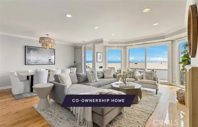 New co-ownership opportunity: Own one-eighth of this professionally managed, turnkey home. Just steps from the sand, this Balboa Peninsula home offers spectacular views of the Pacific and Catalina. Enter through the Dutch front door to an open plan living area featuring a fireplace, an inviting dining area and glass doors to the oceanfront patio. The adjoining kitchen has a peninsula with a breakfast bar, granite countertops, a built-in fridge and loads of storage space. The spacious primary suite has a balcony perfect for catching the sun setting over the water, plus a fireplace and an en suite bathroom with dual sinks and a tiled shower. Down the hall are four guest bedrooms, and the home is topped by a bonus room and sun deck. The home comes fully furnished and professionally decorated.