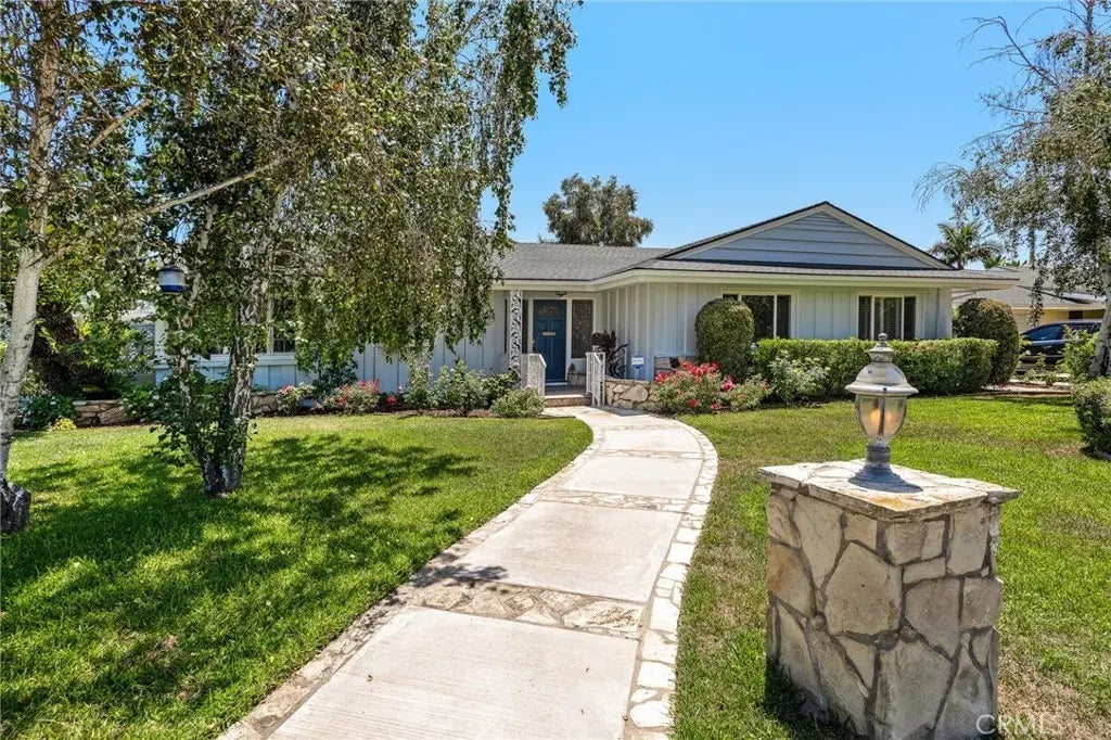 Located on a large corner lot within the prestigious Westmont neighborhood. All homes in this tract were custom built when this area was developed. Large living area spaces for guests and entertaining. The country kitchen style layout allows for an in-room eating area surrounded by corner windows with lots of natural light. Kitchen appliances include wall oven and microwave, 4 burner gas range with custom hood, stainless steel refrigerator and dishwasher, duel kitchen sinks adjacent to a bay window. Wood cabinets are accented with dark surfaces. There are custom dimming ceiling light fixtures throughout most of the home. Most rooms appointed with crown molding. Both the family room and great room/formal dining room have a commanding fireplace that will accent any gathering. Plenty of storage within the house. 2 car garage with custom flooring has additional storage cabinets. The primary bedroom is privately located along the back of the house with doors opening to an secluded above ground spa with backyard access. The primary bathroom has been upgraded to include a separate large shower and bath with spa jets. Two secondary bedrooms are spacious with one using a trick customized usable built-in bookshelf as a door to the closet. There is a tankless water heater in a utility area next to the inside laundry area and a new second tank water heater along the other side of the house. According to tax records the property is approximately 2,487sqft. with a lot size of 10,379sqft. With back house windows open you can hear the serene sounds of water splashing from the koi pond from