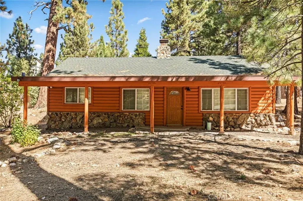 Dreaming of a cozy mountain retreat? This charming home offers a harmonious blend of style and functionality, making it the perfect getaway. Recently rejuvenated, it features new flooring throughout, recessed lighting, and an updated bathroom with a stunning wood countertop. The inside laundry room adds convenience, while the spacious kitchen boasts ample counter and cupboard space, seamlessly flowing into a large living room adorned with elegant crown molding. Relax and unwind in the extended living area, complete with an amazing wood-burning fireplace. Step outside to discover a generously sized outdoor space, perfect for entertaining or storing all your toys, RV, or boat. A storage shed provides additional convenience. Located just minutes from town, Big Bear, ski resorts, and with easy access to Highway 38 and Highway 18, this home is not only a tranquil retreat but also a great commuter location. Embrace mountain living at its finest!