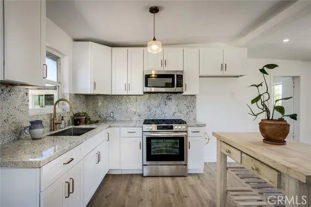 Welcome to this stunningly renovated home in the desirable Yucca Corral Acres, offering a perfect blend of modern amenities and serene desert living. Situated on a sprawling 1-acre lot, this turnkey property features a 1286 sq ft main house with 2 spacious bedrooms, den (perfect for a home office retreat or your own speakeasy), and fully updated bathroom. The 750 sq ft guest house attached to the main house via the garage and with a private rear entrance - offers a spacious living area with 1 bedroom, den or possible 2nd bedroom, and full kitchen. This unit has also been fully renovated and can generate immediate rental income to offset your expenses or host friends and family. Both boast a brand new 30-year composition roof, new flooring throughout, and a newly renovated kitchens with updated appliances, stylish cabinets, fixtures, countertops, and backsplash. The living areas are bright and open, with large windows that let in plenty of natural light, providing a cozy and welcoming atmosphere. Fresh interior and exterior paint enhance the homes aesthetic appeal, making it truly move-in ready. Additional features include an updated main electrical panel, a one-car garage, a 2-car carport, and a connected sewer for modern convenience. At the rear of the property, an additional structure with bathroom lends itself to a future bunkhouse, caretaker quarters, yoga/art studio, home office, or otherwise. The expansive lot offers endless possibilities for creating your own desert oasis, with ample space for a garden, pool, or additional structures. Enjoy outdoor living with a spa