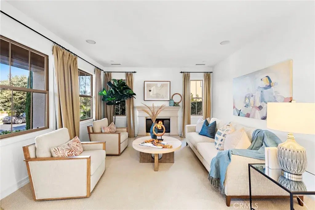 Refreshed with a contemporary, vibrant interior, enhanced LED lighting, and professional staging, this Stella Mare residence in Talega blends style and sophistication with a youthful flair. Nestled on an extra-wide cul-de-sac homesite, the five-bedroom layout is designed for entertaining, relaxation, and family living. The main floor includes a guest suite, a welcoming formal living room, a dining room that opens to an enclosed courtyard with its own fireplace, and a serene side yard surrounded by mature landscaping. The heart of the home features an open-concept kitchen and family room with a breakfast nook. Recently remodeled, the kitchen showcases Montreal quartz countertops, a herringbone backsplash, and rattan bell pendant lighting. It includes a sit-down center island, a KitchenAid appliance package with a 6-burner cooktop, built-in refrigerator, double oven, dishwasher, and microwave. A butler's pantry provides additional storage and a walk-in pantry. The spacious family room is complete with a stacked stone fireplace and built-in audio-video storage. Upstairs, an oversized loft serves as an ideal recreation center, surrounded by three guest bedrooms. Two bedrooms, currently used as offices, share a dual-sink Jack-and-Jill bathroom, while the other guest bedroom enjoys an ensuite bathroom. The primary suite offers serene views of the surrounding hills and trees, a private balcony, and a recently updated bathroom with white shaker cabinetry, his and her vanities, a soaking tub, a walk-in shower, and an oversized walk-in closet. Also on this level is a laundry room wit