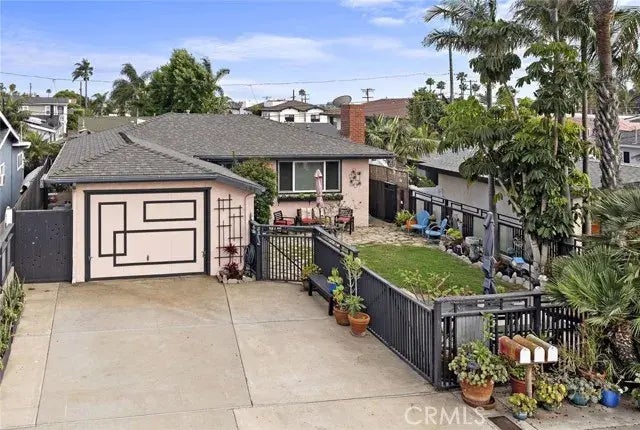 Location, location, location! Rare opportunity nestled in south San Clemente ideally situated in the desirable Trestles community. Just steps away from the pristine beauty of San Clemente State Park and Califia Beach this mid-century charmer teems with the feeling of "home sweet home". Captivatingly eclectic, a must see offering 1037 sq ft of living space including 2 bedrooms and 1.75 baths. Upon entry, you are warmly welcomed by its original hardwood floors. Continue into the cozy living room and find the perfect space for family and intimate gatherings highlighted by a romantic woodburning stone fireplace. The unique and original charm of its beautiful 50s kitchen and dining area will inspire your palate and add a smile to your soul. Not included in the 1037 sq ft sits an additional (Approximately 200 sq ft) enclosed patio off of the kitchen providing a great bonus room, game room, or den. Step into the cozy and private backyard, complete with a deck ideally poised for the addition of a relaxing hot tub offering a tranquil retreat to unwind under the stars. The outdoor sitting area features a romantic firepit, creating an inviting ambiance for entertaining or simply enjoying the nearby ocean breezes and scents. A separate additional structure at the rear of the property (Approximately 135 sq ft) is perfectly suited as an office, art studio, children's playhouse, or workshop. Walk just 1 block and enjoy a round of golf at the highly esteemed San Clemente Municipal Golf Course or just a few steps farther and take in a game of tennis at the public courts located right next t