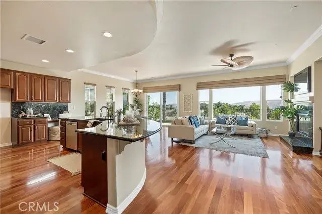 Welcome to this beautiful single-story VIEW!! home in Trilogy at Glen Ivy The Ultimate 55+ LIVING AT ITS FINEST! Trilogy at Glen Ivy is surrounded by natural beauty of Temescal Valley, lush greens and lakes of Glen Ivy Golf Course, and it neighbors the 163-year old award winning Glen Ivy Hot Springs. This home is situated on a quiet corner lot and offers 2 bedrooms, 3.5 bathrooms, and a CASITA with private access. As you step into this exquisite home, you'll be greeted by breathtaking views of the surrounding hills, high ceilings, crown molding, and Brazilian cherry wood flooring throughout most of the house. The living area features a wet bar and cozy fireplace, and stunning views perfect for relaxing and entertaining. The gourmet kitchen, open to the great room, boasts granite counters, double oven, and a spacious kitchen island, ideal for all of your culinary endeavors. The expansive primary suite offers stunning views and an ensuite bathroom with a walk-in closet, jetted soaker tub, separate shower, dual sinks, and a sit down vanity. An ample flex space, currently used as a formal dining room, can be transformed into a family room, a large media/entertainment with seating or a huge Library, the options are endless. You'll find the CASITA! offering privacy for guests, additional living space, as an office or hobby room, or a third bedroom with full bathroom. The yard is low maintenance and has 3 fruit trees on the street side of the home. The Trilogy at Glen Ivy community sets the standard for active adult resort-style living. Enjoy a fully equipped gym, indoor Olympic-s
