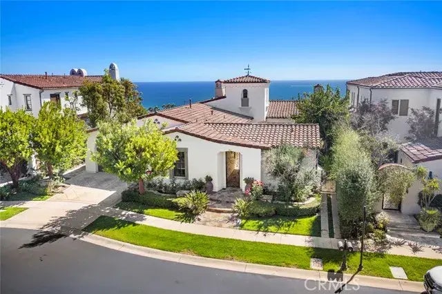 On a premium blufftop view lot in guard-gated Crystal Cove, this home offers panoramic ocean views that extend to Catalina, and a rare single-level floor plan with 3,356 s.f. +/- of flowing space that includes 4 bedrooms and 5 bathrooms (inclusive of guest casita). Relaxed coastal style is found in the open concept living room, where picturesque windows arc around views of sparkling ocean vistas, and a timber ceiling beam and stone fireplace bring texture and warmth. The ocean view kitchen captures the imagination and invites culinary adventures, with top-line appliances, granite counters that extend to bar seating, a water filtration system, and French doors in the casual dining area that open to a sunny patio. A butlers pantry and large walk-in pantry offer expansive storage space and connect to a formal dining room that creates a space to share good food and good company. A private central courtyard links to the main living spaces, as well as a detached casita with a bathroom; a flexible space that creates the opportunity for a private guest retreat, a quiet home office, or a game room or family room. Four bedrooms in the main house all access ensuites, with two bedrooms sharing a bathroom, a junior suite offering a private bathroom, and the primary bathroom featuring a soaking tub, separate shower, separate dual vanities, dual walk-in closets, and doors that open to lush greenery that creates a spa-like experience. Stunning views of the deep blue Pacific infuse the primary bedroom with calm, and French doors open to ocean breezes. Outdoor spaces take full advantage of e