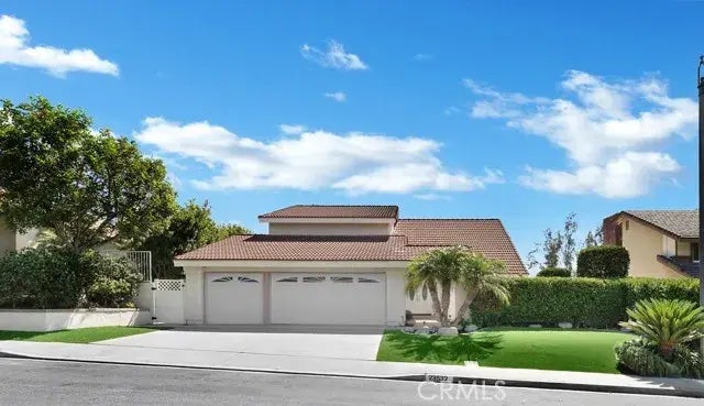 Dont miss this gorgeous pool home in a highly desirable Mission Viejo neighborhood. Ideally located on a single loaded, cul-de-sac street, with views to the Saddleback Mountains, Casta Del Sol Golf Course and City Lights. As you approach the home you will be drawn to the beautiful curb appeal with high-end artificial turf and beautiful landscaping. The private front courtyard is a tranquil place to relax and enjoy the beautiful water fountain. Enter the home through the dramatic entry with soaring ceilings and sweeping staircase. Luxury Vinyl covers the living room, dining room, family room and main floor bedroom. The outstanding floor plan has an open concept with nearly 3,100 square feet, including 5 bedrooms, with one on the main floor, 3.00 bathrooms, a beautifully remodeled kitchen with SS appliances, large family room with cozy fireplace, formal living room, formal dining room, inside laundry and 3 car garage. Upstairs youll find the large master suite with grand entrance, spacious sitting area and beautiful outdoor patio deck to relax and take in the views. The oversized master bath boasts a soaking tub, enclosed glass shower, and triple vanities. The newly remodeled second bath has a modern flare with a deep soaking tub and shower combo, dual vanity, designer fixtures, fan with heater and a beautiful custom LED mirror. All 3 of the additional bedrooms upstairs are spacious, one bedroom has a full-size door that leads to a large storage area in the attic. Some of the additional upgrades include dual pane windows and sliders, newer PEX piping, newer tankless water hea