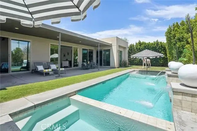 Welcome to 2578 Isabella Way, a stunning residence located in the sought-after Enclave at Sunrise, a community designed for the quintessential desert lifestyle. Built in 2015, this home offers a sleek and modern aesthetic complemented by numerous high-end upgrades. KEY FEATURES: ** Stylish Interiors --Porcelain tile flooring throughout, high ceilings, and high-end custom wallpaper, including unique Swarovski crystal feature walls! **Energy Efficiency-- Leased Tesla solar panels, a tankless water heater, and double-pane windows ensure low maintenance and cost-effective living. **Modern Conveniences-- Automatic window shades, a water softening system, a water leak detection system, instant hot water rotation throughout the house and Wifi pool controller with phone app. **Luxurious Touches-- Fogless LED mirrors in all bathrooms, a huge walk-in closet in the primary bedroom, and a saltwater pool with a spa, tanning ledge, and three serene pool fountains. **Security-- An exterior security system for added peace of mind and direct access double garage. **Outdoor Living-- An expansive lot with a private front entry garden featuring a spot lit three-pillar fountain, and a lush backyard perfect for relaxation or entertaining, complete with a large covered patio and natural grass lawn. Yes... this home is being sold with the Pepsi Vending Machine! An open-plan living area seamlessly connects the kitchen, dining, and living spaces, all bathed in natural light with sliding doors that lead to both the front and back outdoor areas, ideal for entertaining. Located just minutes from downto