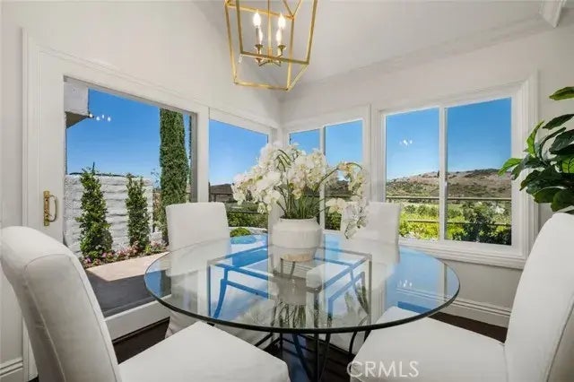 Set among the verdant hills of Turtle Rock, this community is truly a hidden gem. Entering through the stately private gates, Turtle Rock Pointe invites you to relish the park like grounds featuring mature trees and expansive greenbelts. And perched above the Strawberry Farms Golf Course you will find this stunning home...8 Los Gatos is a beautifully remodeled home with a totally unobstructed view of the golf course, hills and mountains beyond. Filled with natural light and sit down views, this home will enchant you. The freshly remodeled kitchen features a new Kitchen Aide stainless refrigerator and gas cook top with downdraft ventilation, in addition to the newly installed quartzite counter tops and under counter lighting. Enjoy your morning coffee and the sunrise in the charming breakfast nook off the kitchen...or enjoy watching the sunset from your dining room. The spacious living room features french doors opening to the patio and the artistically created cherry wood fireplace hearth. Hardwood flooring graces the entire downstairs. What incredible views you will wake up to from the primary bedroom. The ensuite bath features a dual vanity, roman tub and separate shower along with a walk in closet with the much cherished custom built ins. This is the home you have been waiting for!