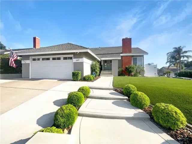 Welcome to a stunning split-level haven nestled on a desirable corner lot in the prestigious community of Yorba Linda, just steps away from the renowned Yorba Linda Country Club. This meticulously upgraded 4-bedroom, 3-bathroom home offers 2,017 square feet of thoughtfully designed living space, promising an exceptional lifestyle of comfort and elegance. Youll be enchanted by the grand curb appeal with the artful combination of hardscape and lush artificial turf which enhances the beauty of the front yard and also offers a low-maintenance solution. Step inside to discover a harmonious blend of wood flooring, travertine tile, and laminate flooring throughout, giving the home a warm yet sophisticated feel. The expansive living room welcomes you with soaring vaulted ceilings, oversized windows, and abundant natural light and invites you to relax by the fireplace and enjoy tranquil surroundings. The formal dining room flows seamlessly to a patio, perfect for entertaining. The adjoining half bath and primary suite on this level provide a private, luxurious retreat. The primary bedroom, bathed in natural light, features a chic barn door leading to an en-suite bathroom that exudes relaxation and style. Continue your journey into the heart of the homea beautifully remodeled kitchen that is both a chefs dream and a central hub. With gleaming granite countertops, stainless steel appliances, two spacious pantries, and abundant cabinetry, this kitchen is as functional as it is beautiful. The adjacent grand family room has easy access to the backyard. Enjoy year-round comfort with centr