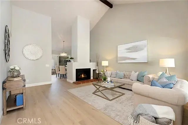Meticulously Upgraded SINGLE-LEVEL home, offering 3 bedrooms and 2 baths in the vibrant heart of Irvine. Every detail has been thoughtfully crafted, from High-End Laminate Flooring to custom Cabinetry, fresh Paint, and New windows throughout. The home is bathed in natural light, thanks to high ceilings and strategically placed skylights that create a bright and airy ambiance. The living room, centered around a welcoming fireplace, exudes warmth and charm. Just beyond, a separate dining area, adorned with a new timeless classic chandelier, is perfect for family meal gatherings. The kitchen is a true delight, featuring a trey ceiling, New white custom Cabinets, and elegant Quartz countertops. Enjoy preparing meals while overlooking the private patio, with the added convenience of direct access to the oversized two-car garage. A generously sized, airy front bedroom offers double access from both the living room and the hallway, complementing the equally bright and inviting second bedroom. The primary suite features an expansive wall-to-wall closet and an en suite bathroom complete with upgraded vanity. Quiet premium end unit while being centrally located near everything you needRestaurants, Supermarkets, and Shopping. Located within the award-winning Irvine School District, it's just a short walk to Deerfield Elementary School. Enjoy easy access to the 5 and 405 freeways, the Airport, World-Class Shopping Centers, iconic OC Beaches, and top-tier Parks, andEntertainment and Sports venues.