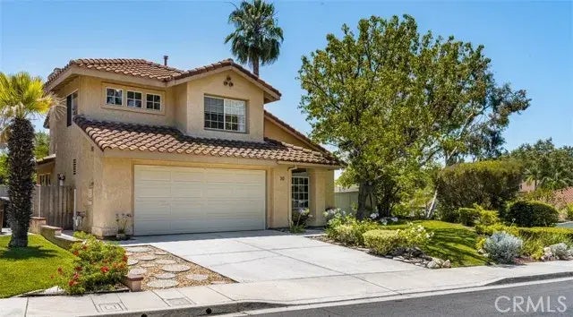 Corner lot with a view of a lush hillside sitting on a single loaded cul-du-sac street! Once entering this stunning 3 bed 2.5 bath home, you will fall in love this two-story ceiling, open floor plan living room, full of natural light and view of the hillside. The upgraded kitchen, with a view of the lush backyard and hillside, quartz countertops, updated contemporary cabinetry, upgraded appliances, recessed lighting, a farmhouse sink, and a breakfast nook, perfect for enjoying your morning coffee. The adjacent family room with fireplace is an ideal place for family gatherings. Upstairs, the primary suite boasts high vaulted ceilings, a beautiful view of the yard and trees, a remodeled bath with quartz countertops, dual vanities, a shower in tub, and a large walk-in closet with built-ins. The two other bedrooms and secondary full bath finish the upstairs living areas. Step outside through the back slider to a large backyard with a view of trees and the hillside. The backyard has artificial turf for playing, a playhouse, and a fire pit with seating. The great Arroyo Vista community has amazing amenities: a pool, a spa, and a park with a basketball court. The SAMLARC amenities include, pools, a beach club and lagoon, parks, basketball courts, clubhouses, RSM Lake, pickleball courts, tennis courts, volleyball courts, trails and more. The top rated Capistrano Unified School District, and you have easy access to shopping, entertainment, the Toll Road, and 5 freeway. Hurry on, this is the must to see!