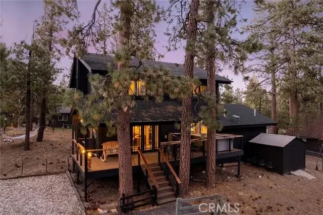 Nestled amidst the serene beauty of Big Bear, this charming 3-bedroom, 2-bathroom cabin offers the perfect blend of comfort and convenience. With its spacious 1,560 square feet and a generous 8,120 square foot lot, this home provides ample room for relaxation and entertainment. Enjoy the convenience of nearby supermarkets, hiking trails, biking paths, and snow resorts, making it an ideal base for outdoor enthusiasts. Recently renovated from top to bottom, this cabin boasts modern updates while maintaining its rustic charm. Inside, you'll find new flooring, fresh paint, and a beautifully redesigned kitchen with new cabinets and countertops. The open floor plan creates a welcoming atmosphere, perfect for spending quality time with loved ones. Outside, enjoy the newly constructed trex decks and a rejuvenating jacuzzi. The large lot offers plenty of space for kids to sled during the snow season, making it a winter wonderland for families. With two flat driveways for easy access, parking is a breeze, ensuring a stress-free experience. Additional highlights include a converted garage game room, stunning mountain views, and a peaceful setting.