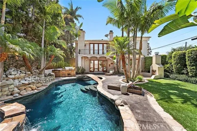 Welcome to 1603 5th Street, a stunning residence in the heart of Manhattan Beach, CA, where modern elegance meets timeless sophistication. This expansive near 4,700-square-foot home, situated on a generous 8,581-square-foot corner lot, offers an unparalleled living experience with five spacious bedrooms and four and a half luxurious bathrooms. This large and private corner lot provides a sense of tropical bliss mix with maximum entertainment opportunities. As you step inside, you'll be greeted by freshly painted interiors and refinished solid Brazilian cherry hardwood flooring that exudes warmth and refreshment. The brand-new carpet adds a touch of comfort and softness to the living spaces upstairs. The open-concept design seamlessly connects the living areas, creating a harmonious flow perfect for both entertaining and everyday living. The gourmet kitchen is a chef's dream, featuring a cozy breakfast nook, a butler's pantry, and ample built-ins for storage. The primary suite is a private oasis with a walk-in closet and separate vanities, jetted tub, and offering a serene retreat at the end of the day. Outdoors, the meticulously and mature landscaped yard boasts a sparkling pool and hot tub, providing the perfect setting for relaxation and enjoyment. Additional amenities include a convenient washer and dryer amongst the bedrooms upstairs, air conditioning for year-round comfort, and ample parking with an attached generously sized 3 car garage. This exquisite home epitomizes modern luxury and sophisticated living in one of California's most desirable locales. Don't miss the