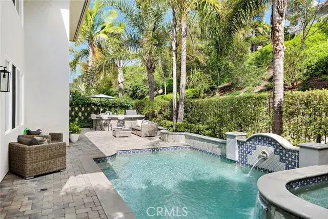 Be captivated by this 4-bedroom/plus office gated home with 4.5 bathrooms, and 3,800 square feet of refined living, located in the exclusive Silver Oaks community of Westridge. A gated entryway courtyard with serene fountain, sets the tone for the luxury that awaits inside with rich hardwood floors, soaring ceilings and custom upgrades. The formal living room provides a inviting space, featuring a fireplace, recessed ceilings, and large windows that bathe the room in natural light and offer views of the pool and yard. Adjacent to this, the impressive formal dining room offers wood floors, recessed lighting, crown molding, and wiring for a sound system. The adjacent family room boasts an open-concept layout and features warm hardwood floors, custom ceiling beams, a built-in media center, a grand fireplace with travertine sitting shelf, integrated speakers and numerous windows of light with views of the green hillsides. The gourmet kitchen is a chefs dream, showcasing travertine flooring, rich cabinetry, granite countertops, and top of the line stainless steel appliances, including a sub-zero refrigerator, microwave, and double ovens. A large island and breakfast bar offer plenty of room for entertaining and curating meals, and the walk-in pantry has room for all your cooking essentials. The kitchen and family room are a wonderful place to entertain and enjoy time with family, and loved ones ensuring plenty of room, cohesiveness and fun. The family room opens to the outdoor BBQ and pool, perfect for entertaining and al fresco dining. The downstairs private office/bedroom ensu
