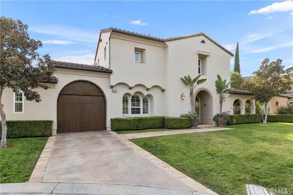 On the top of the hills in the gated community of Rancho Madrina, this elegant home provides you privacy and sweeping views of mountains, city lights and distant ocean. Desirable layout creating wonderful flow and ultimate functionality throughout. Stepping into the magnificent soaring foyer, numerous windows flood the rooms with natural light, ushering you into the elegant living space with its exquisite detail: arched doorways, tray ceilings, leaded glass windows, polished marble flooring on main level, rich hardwood flooring on upper level, custom built-ins, wood shutters, crown and base moldings, and sweeping circular staircase with an additional back staircase from kitchen to avoid walking through the foyer or formal living areas. At the west end of the main living area is the eat-in kitchen which has abundant counter space and a working island with sit up bar, three sinks, two dishwashers, SubZero refrigerator, warming drawer, six burner Wolf stove with grill and dual ovens, and butlers pantry with a walk-in pantry and storage/prep space. The kitchen faces a quaint dining niche, a large family room with fireplace and entertainment center with custom built-ins, and amazing views, making it the perfect place to start the day. There is one bedroom with full bathroom on the first floor, which is convenient for guest or elder family members. Additional well size room on the first floor, ideal for home remote work. On the second floor, the romantic primary suite, big size loft/office, two bedroom suites and laundry room. The romantic primary suite has a view deck, fireplace